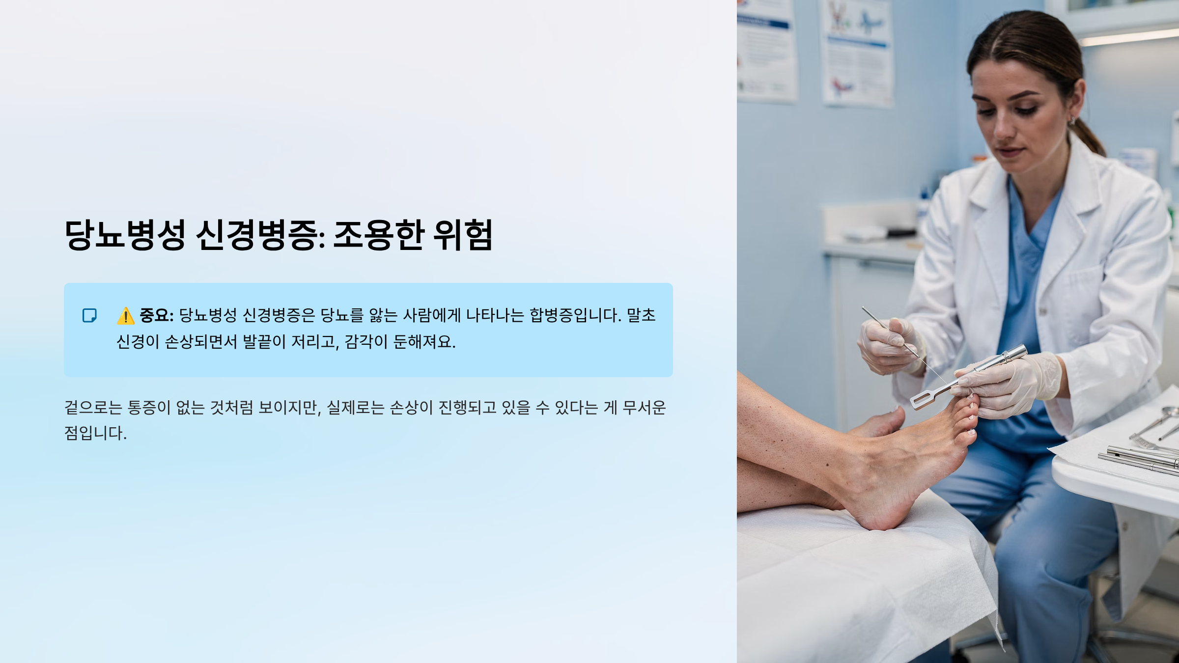 당뇨병성 신경병증은 당뇨를 앓는 사람에게 나타나는 합병증입니다. 말초신경이 손상되면서 발끝이 저리고, 감각이 둔해져요. 겉으로는 통증이 없는 것처럼 보이지만, 실제로는 손상이 진행되고 있을 수 있다는 게 무서운 점입니다.