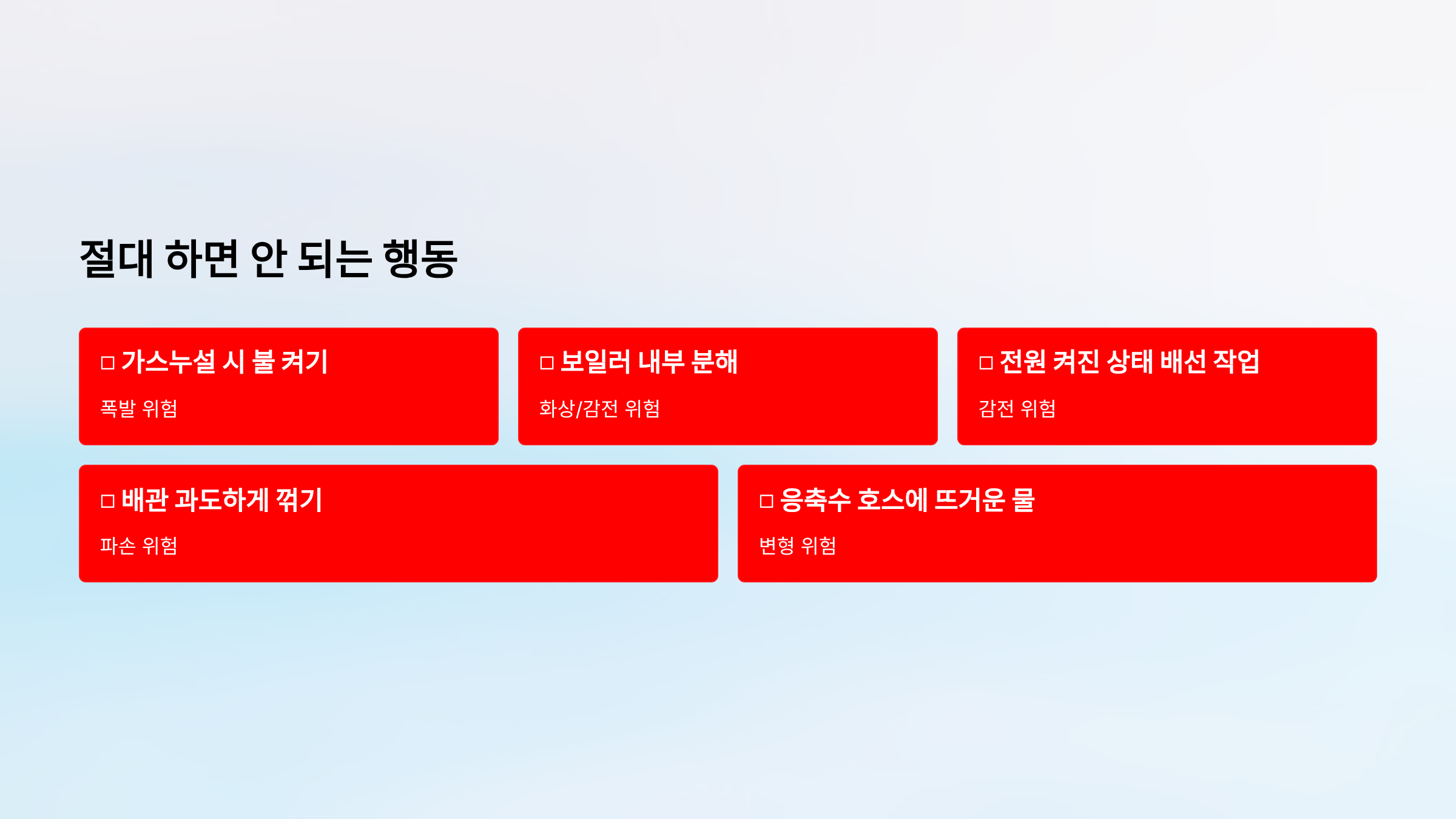 | 배관 동결 (겨울철) | ⭐⭐⭐ |