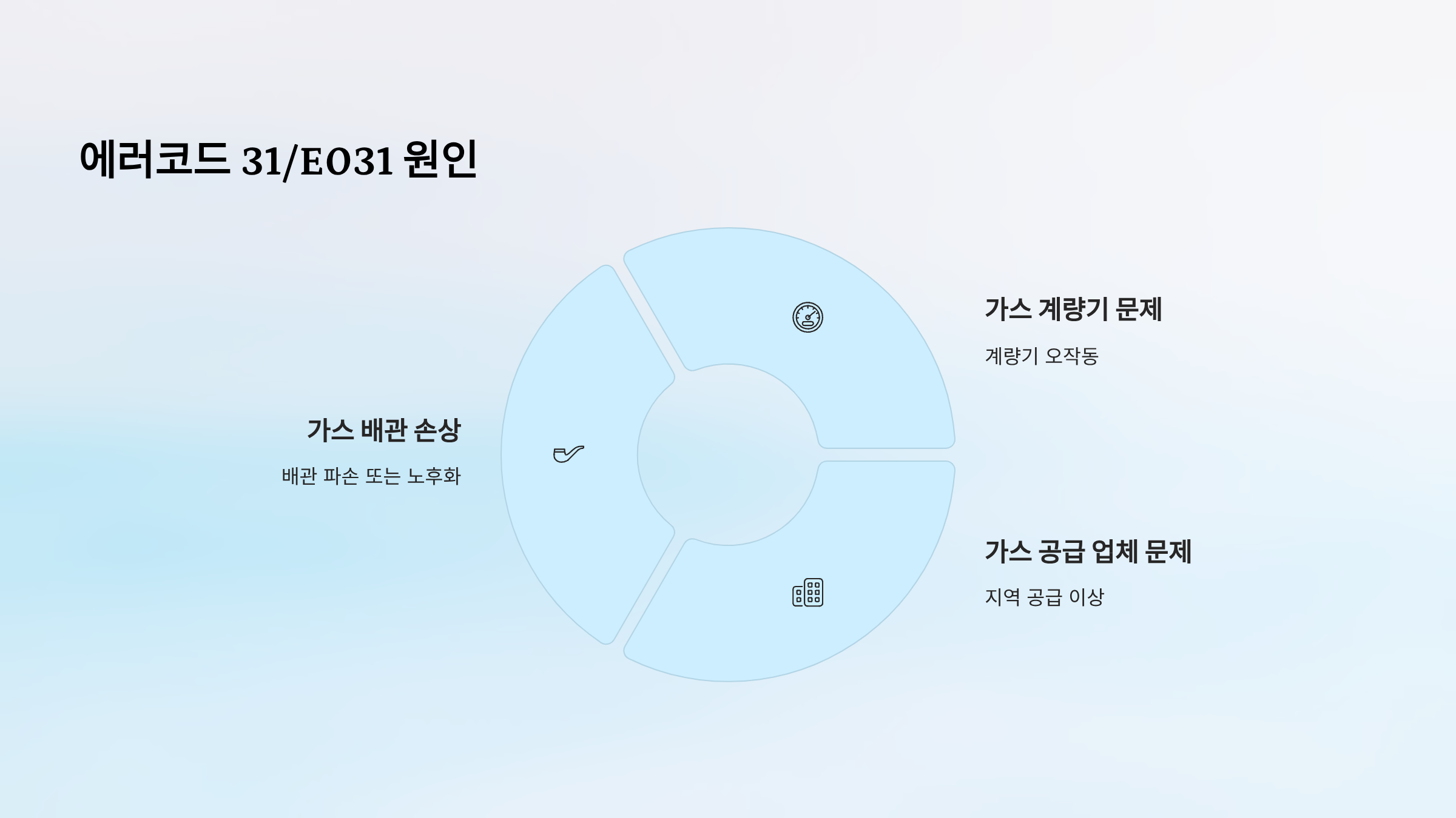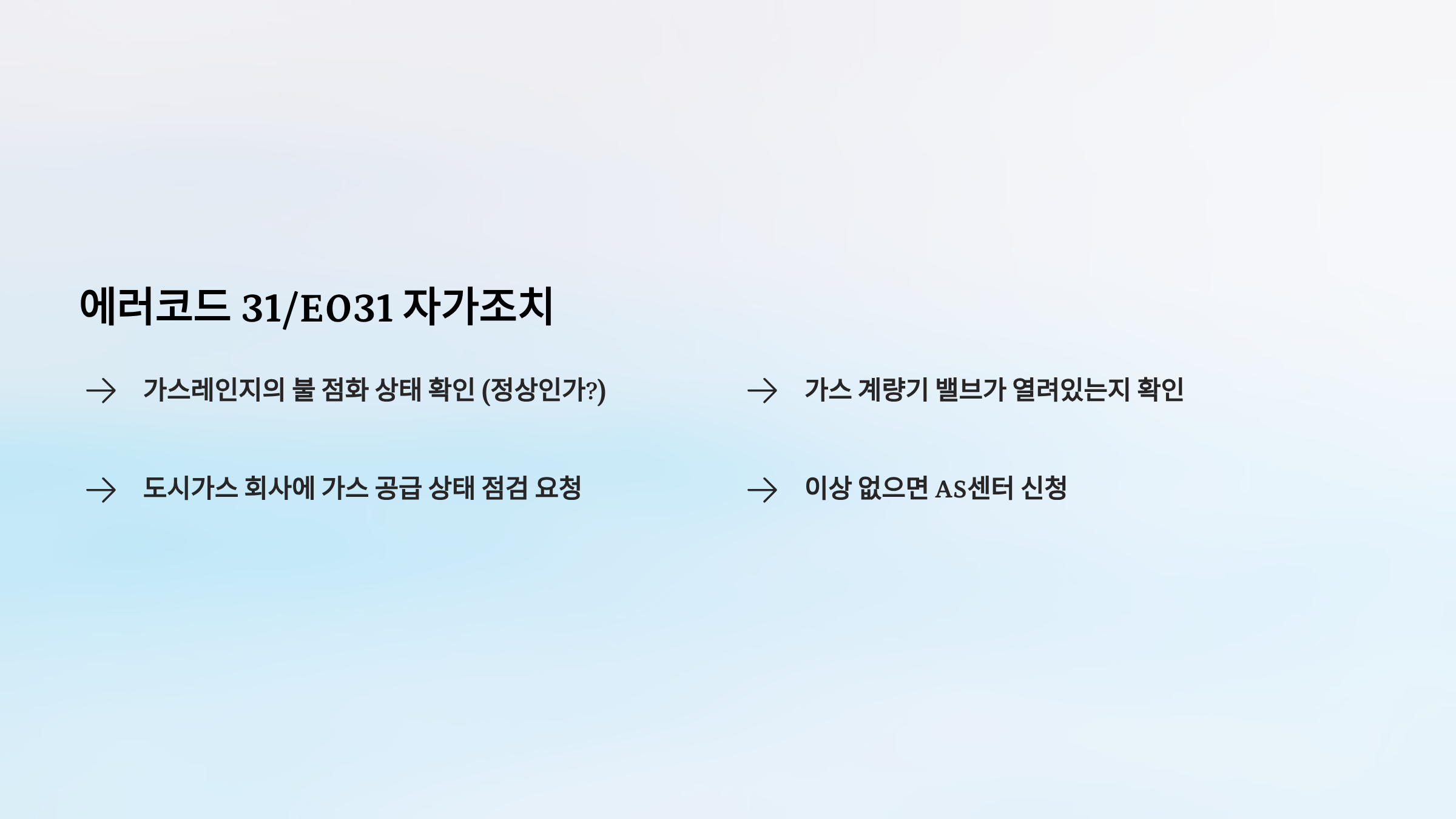 | 31/E031 | 가스압력이상 | 가스공급 문제 | △ 부분 | ✓ 필요 |