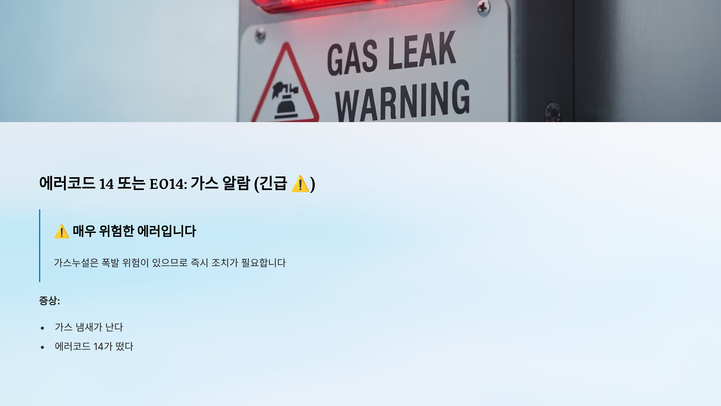 에러코드 14 또는 E014: 가스 알람 (긴급 ⚠️)