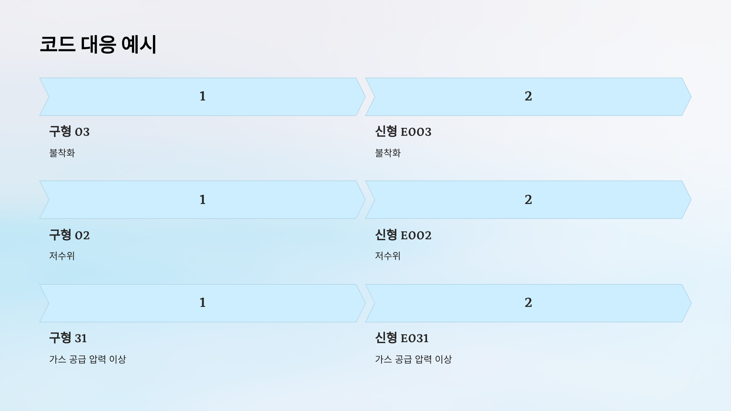 - 구형 31 = 신형 E031 (가스 공급 압력 이상)