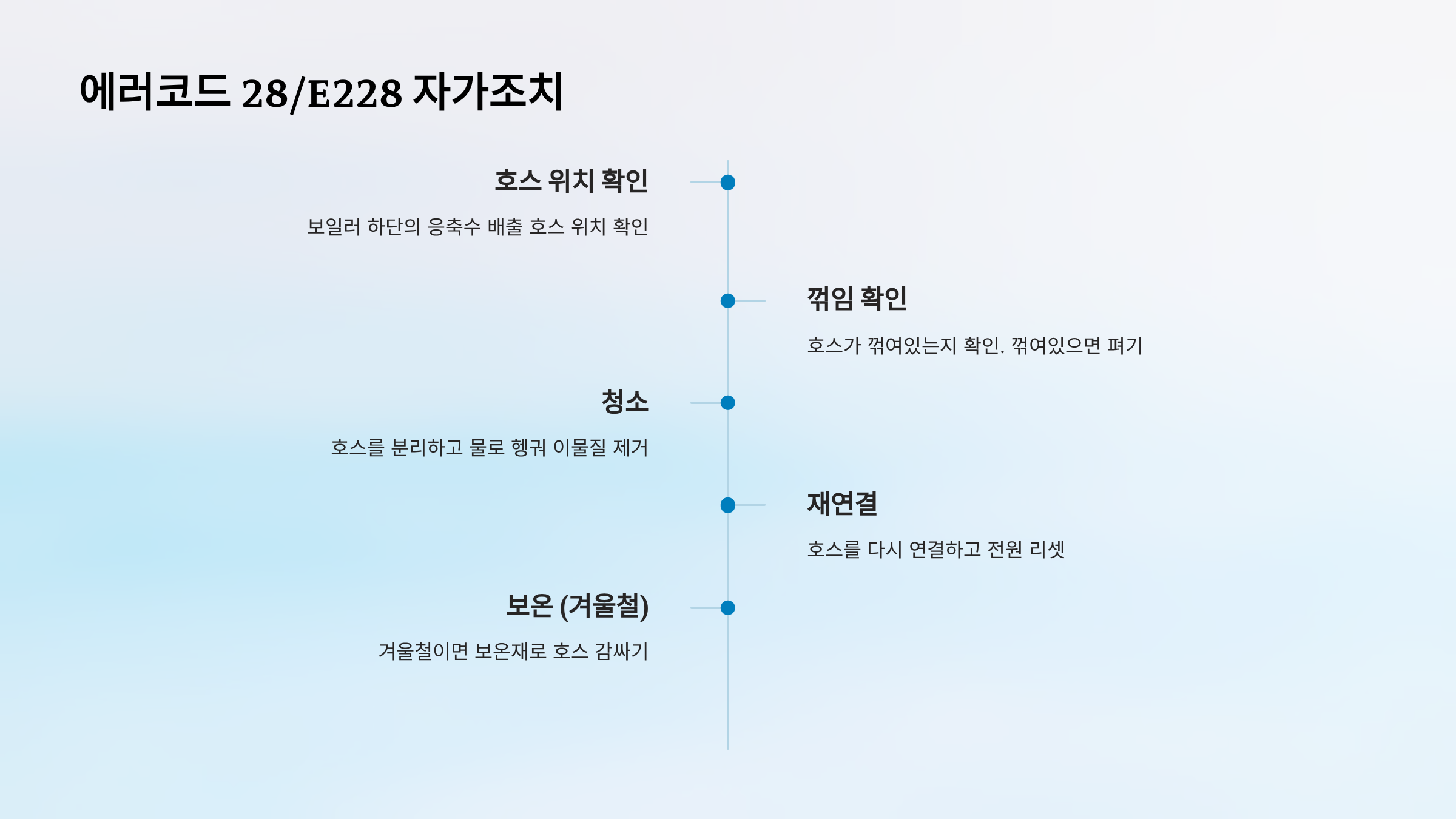 | 28/E228 | 응축수배출 | 배출호스 막힘 | ✓ 가능 | △ 계속시 |