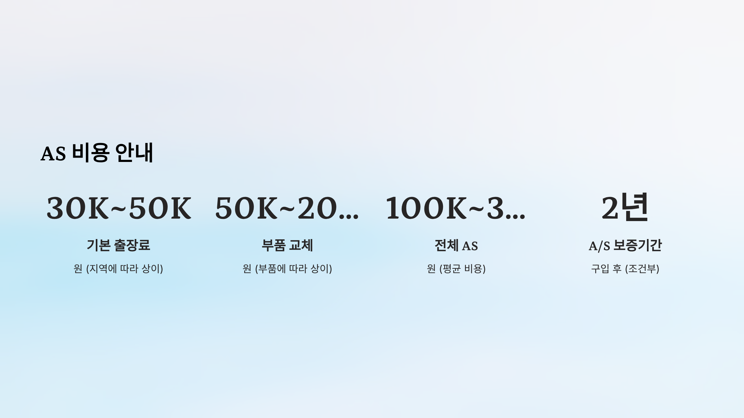 | 전체 AS | 100,000~300,000원 (평균) |