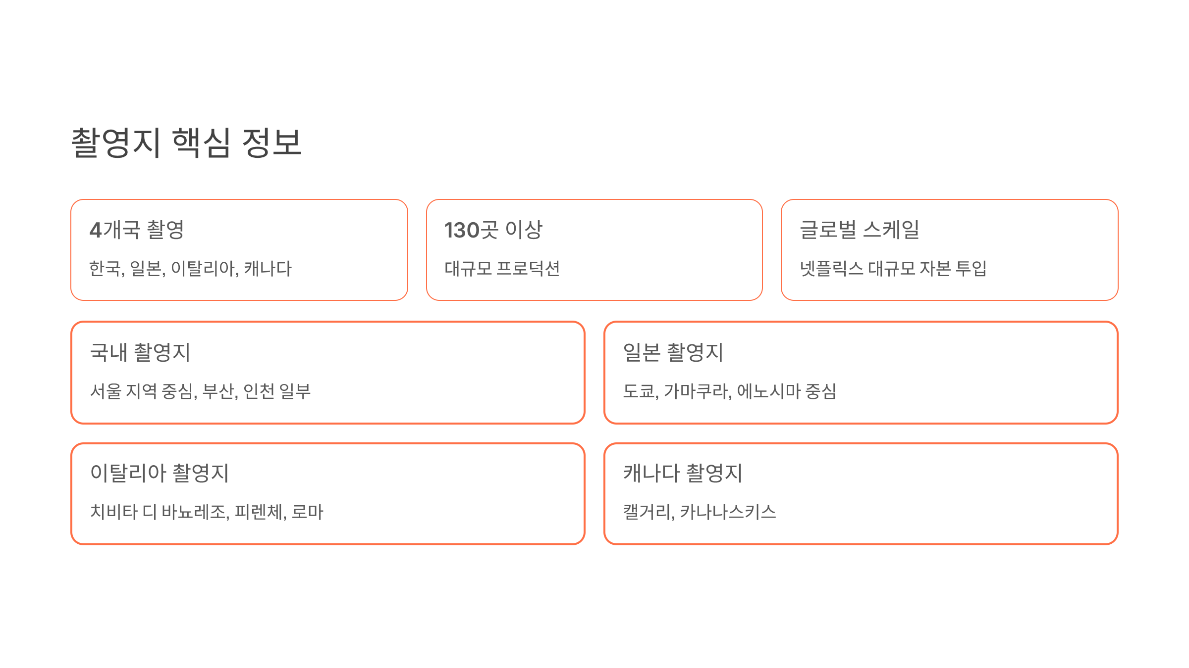 - 총 촬영지 130곳 이상에서 진행된 대규모 프로덕션