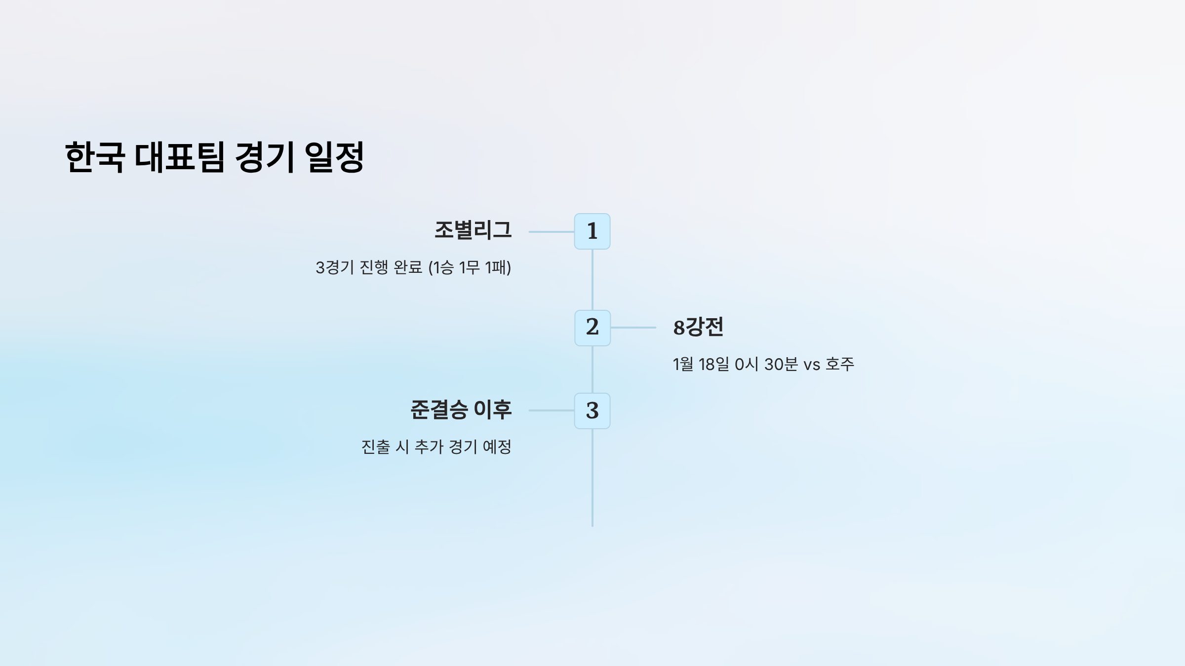 - 8강 (1월 18일): 한국 vs 호주 → KBS2