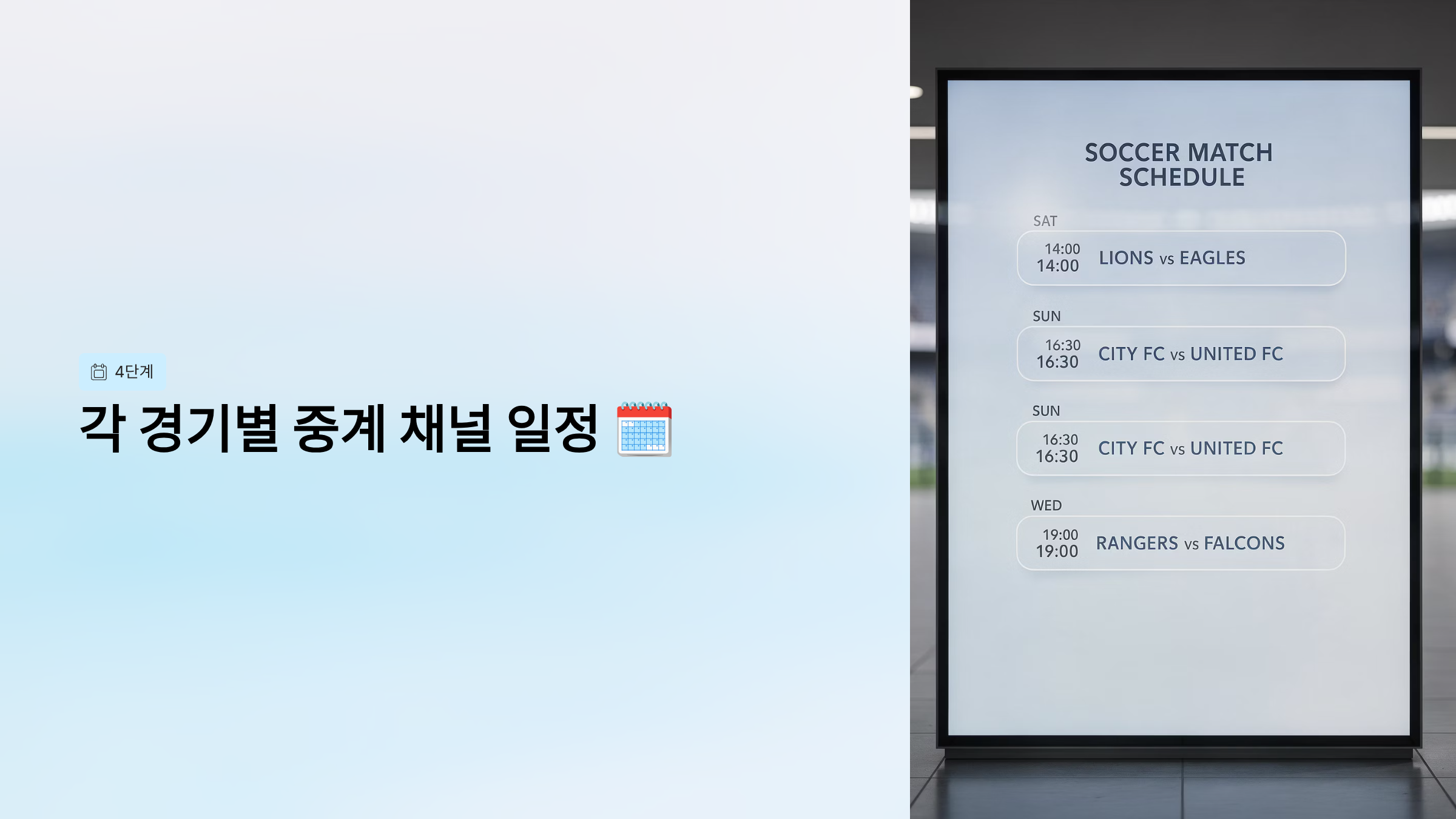 4단계: 각 경기별 중계 채널 일정 🗓️