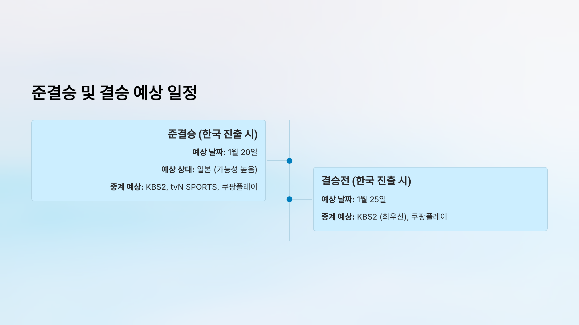 - 준결승 (1월 20일): 한국 vs 일본 → KBS2 (진출 시)