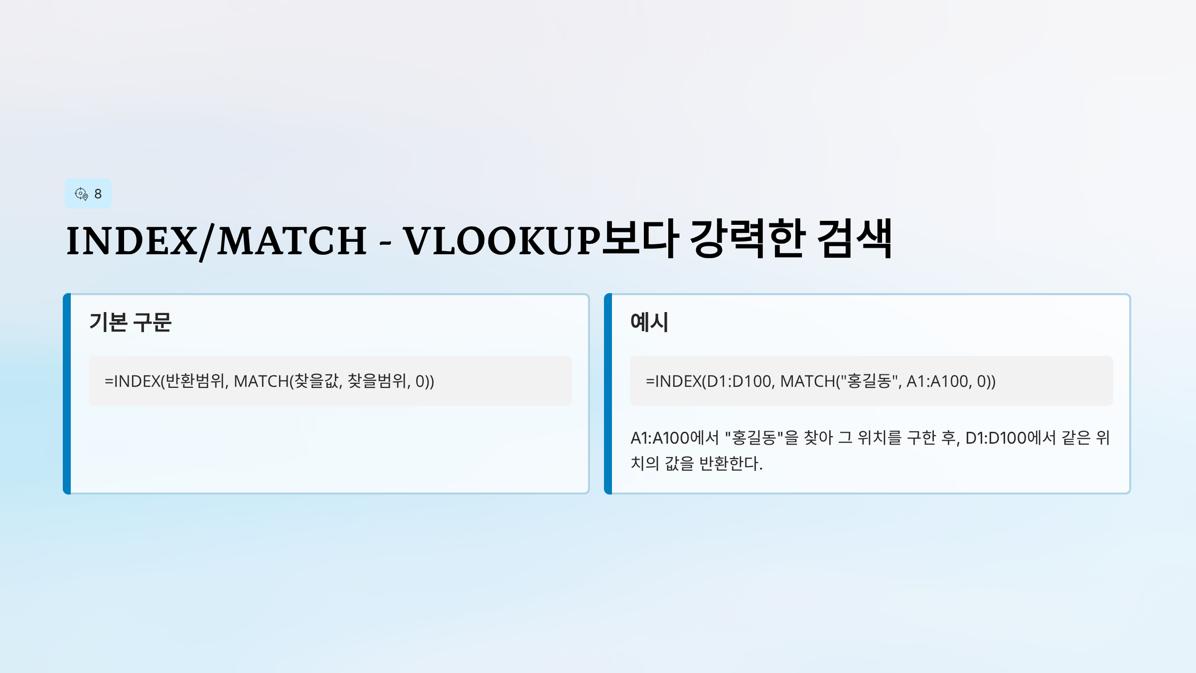 8️⃣ INDEX/MATCH - VLOOKUP보다 강력한 검색