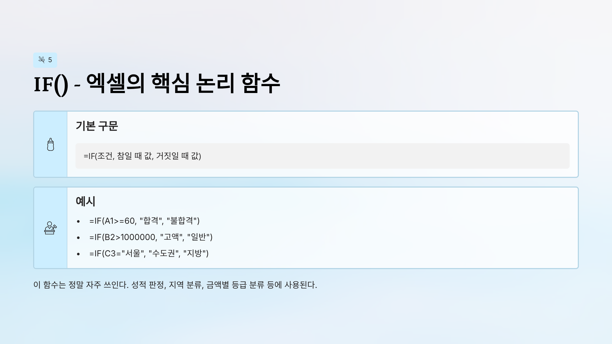 5️⃣ IF() - 엑셀의 핵심 논리 함수