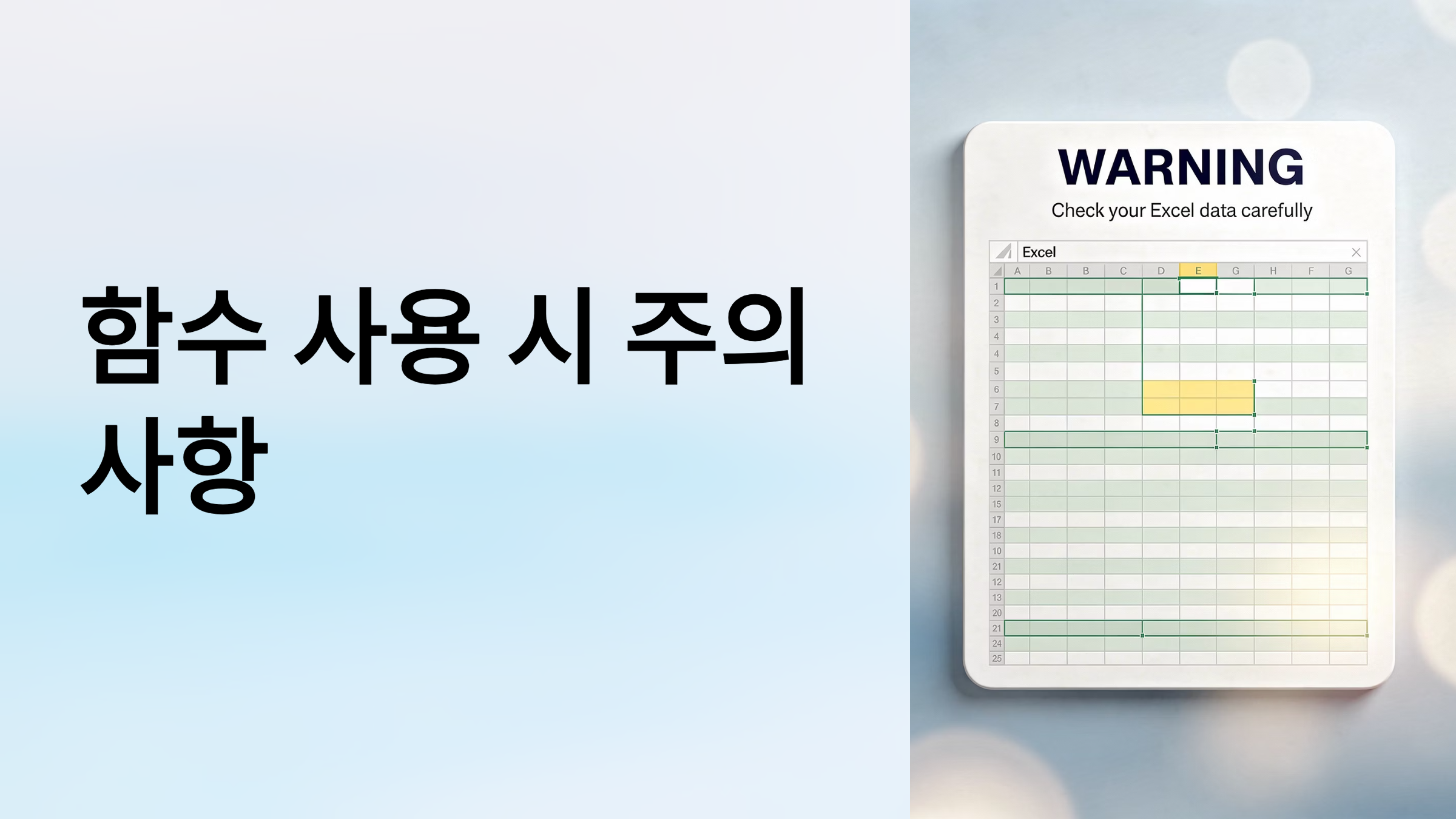 - 텍스트가 포함된 셀도 함께 선택하지 않도록 주의한다.