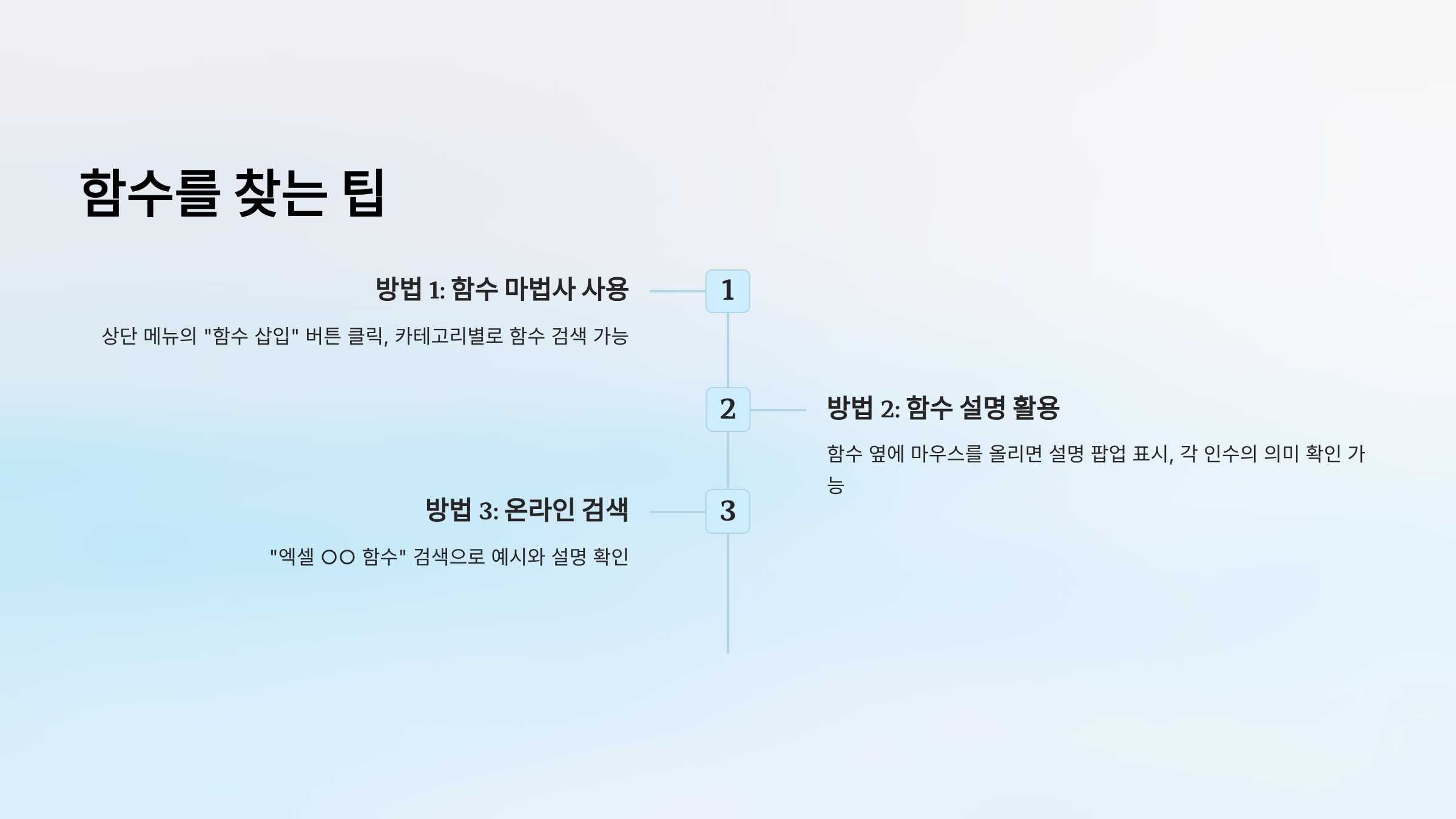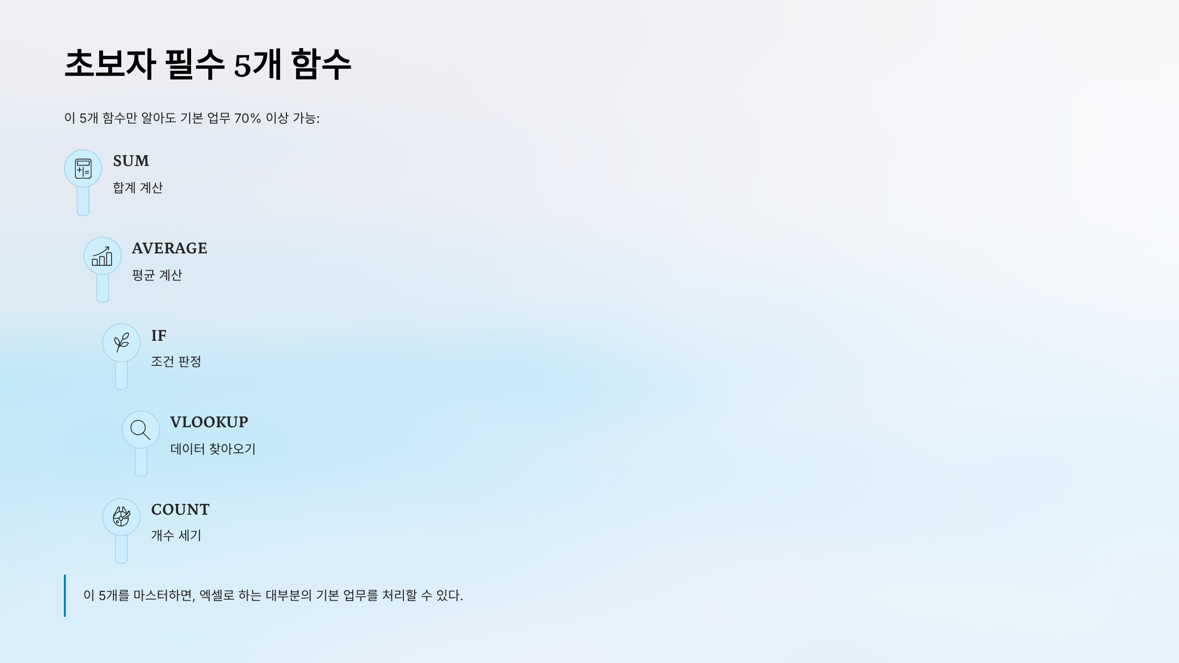 엑셀을 켰을 때 가장 먼저 마주치는 두려움이 무엇일까? 수백 개에 달하는 함수들의 목록이다. "도대체 언제 어떤 함수를 써야 하지?" 하는 질문이 든다. 하지만 안심해도 된다. 실무에서 정말 필요한 함수는 20개 정도에 불과하고, 그 중에서도 10개만 제대로 알면 업무의 70% 이상을 처리할 수 있다.