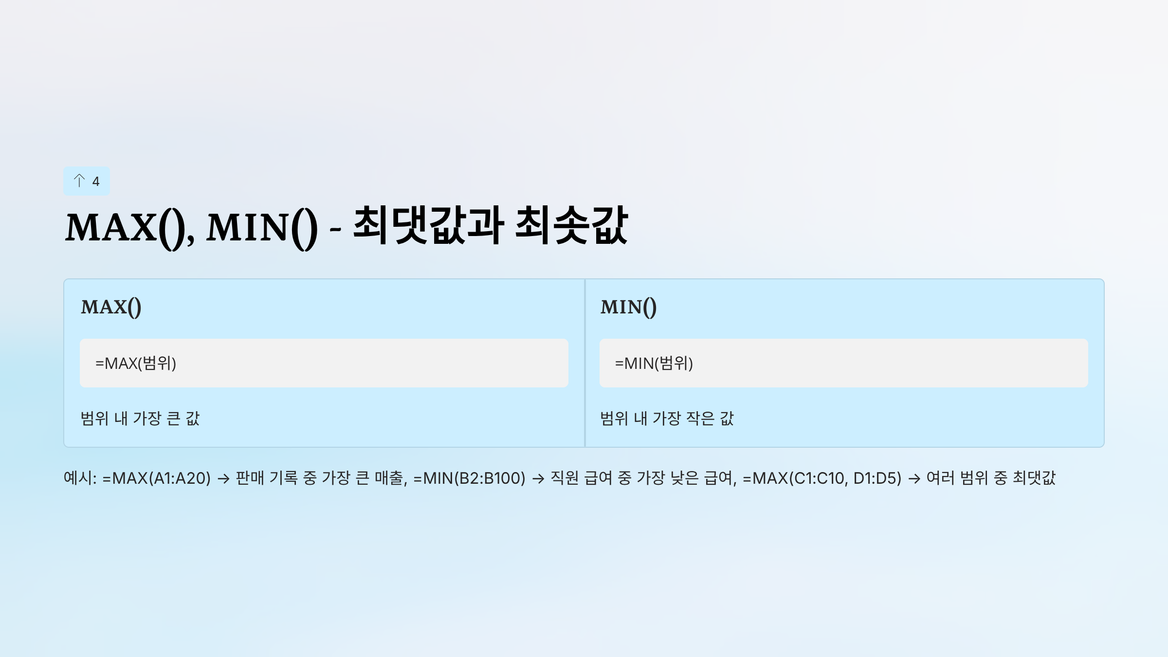 4️⃣ MAX(), MIN() - 최댓값과 최솟값