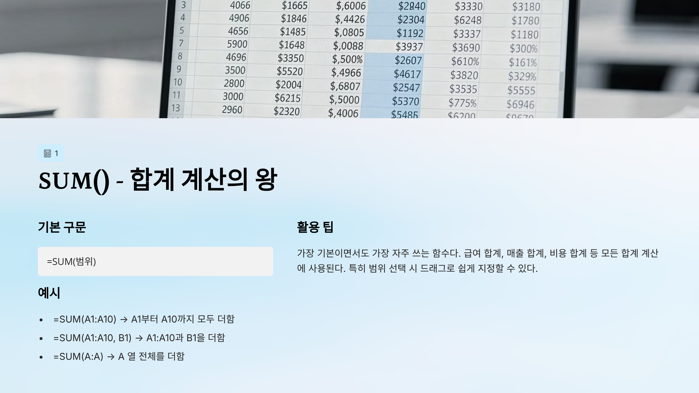 이 글에서는 초보자도 쉽게 따라 할 수 있도록, 실무에서 정말 쓰는 함수들만 엄선해서 정리했다. 각 함수의 기본 구조부터 실제 활용 사례까지 상세히 설명하니, 마지막까지 따라오면 엑셀을 두려워하지 않게 될 것이다.