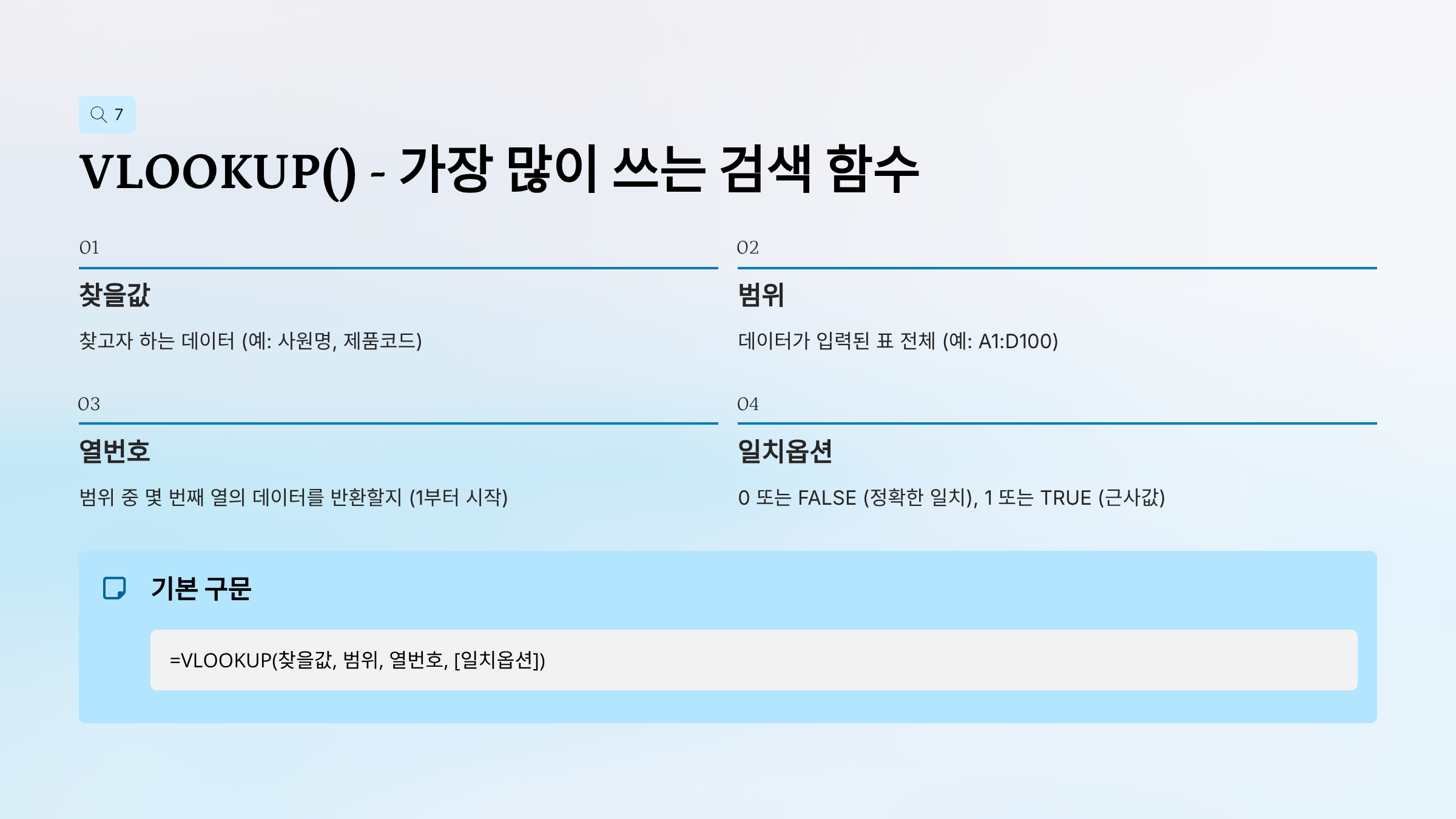 7️⃣ VLOOKUP() - 가장 많이 쓰는 검색 함수
