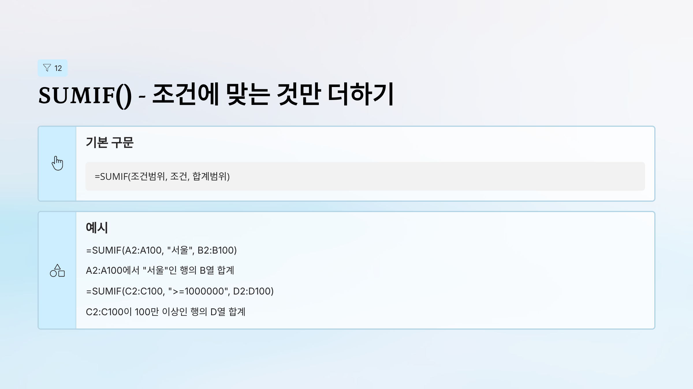 1️⃣2️⃣ SUMIF() - 조건에 맞는 것만 더하기