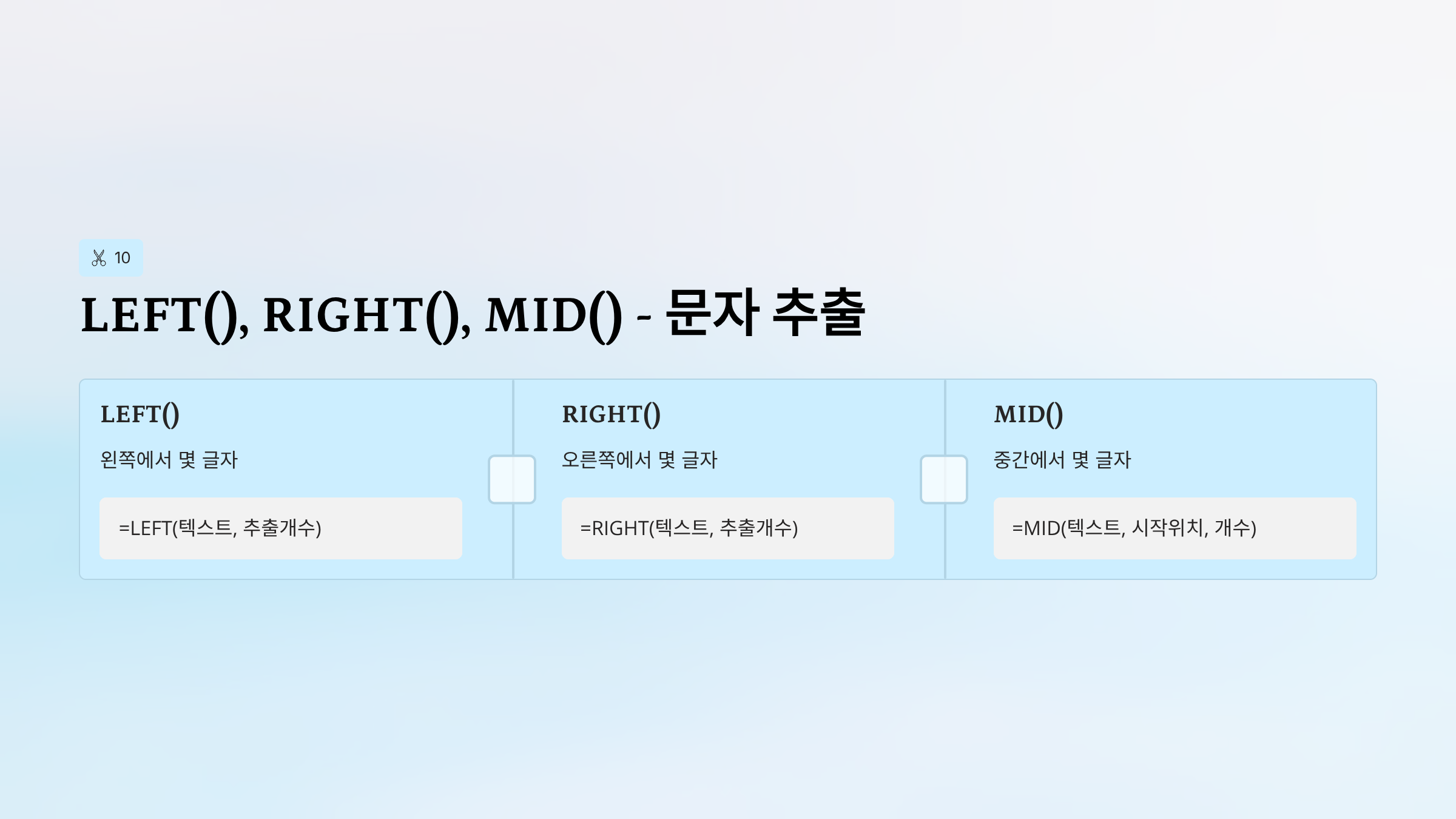 🔟 LEFT(), RIGHT(), MID() - 문자 추출