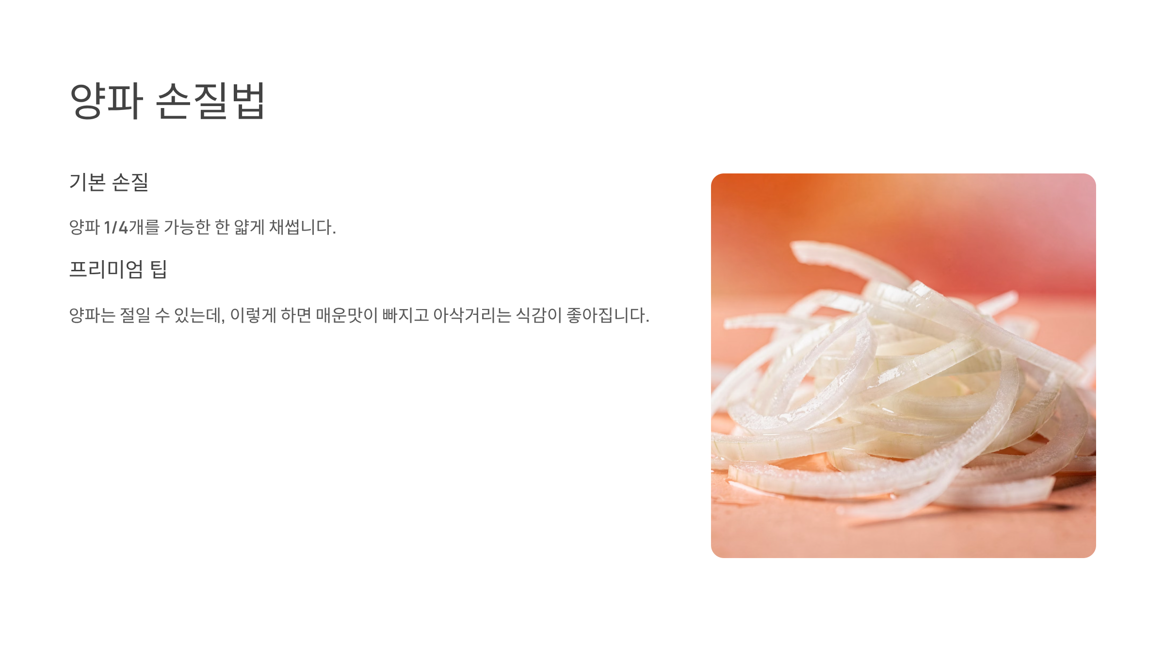 - 양파는 절일 수 있는데, 이렇게 하면 매운맛이 빠지고 아삭거리는 식감이 좋아집니다.