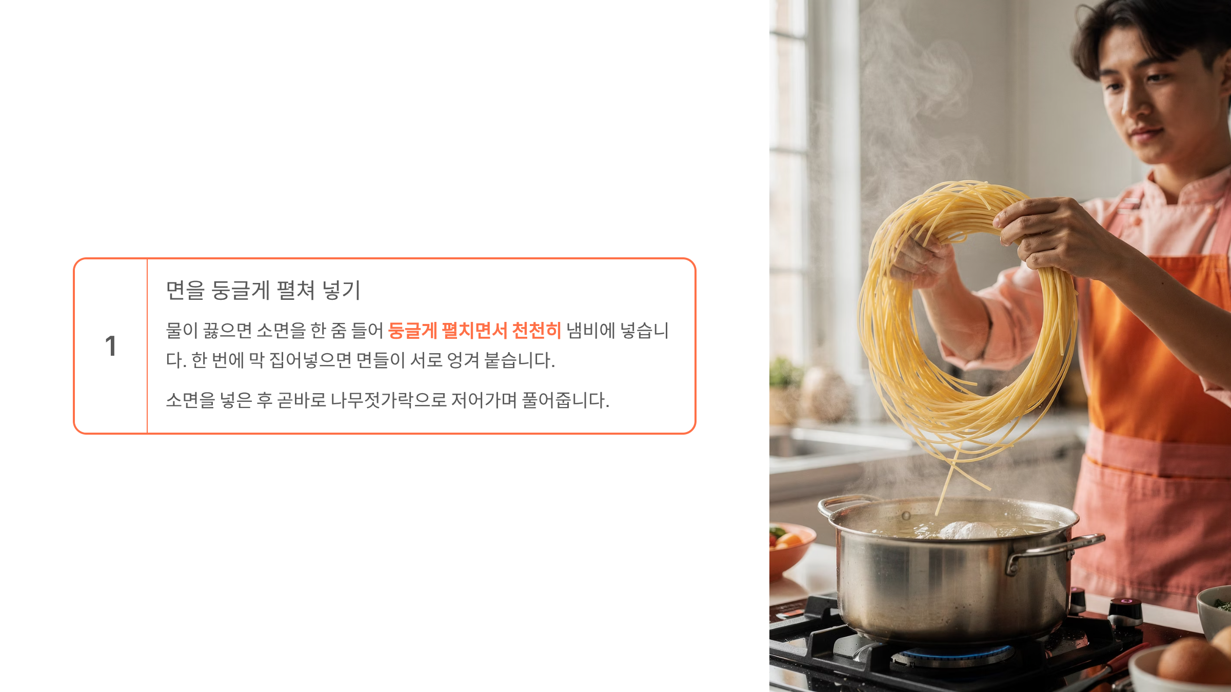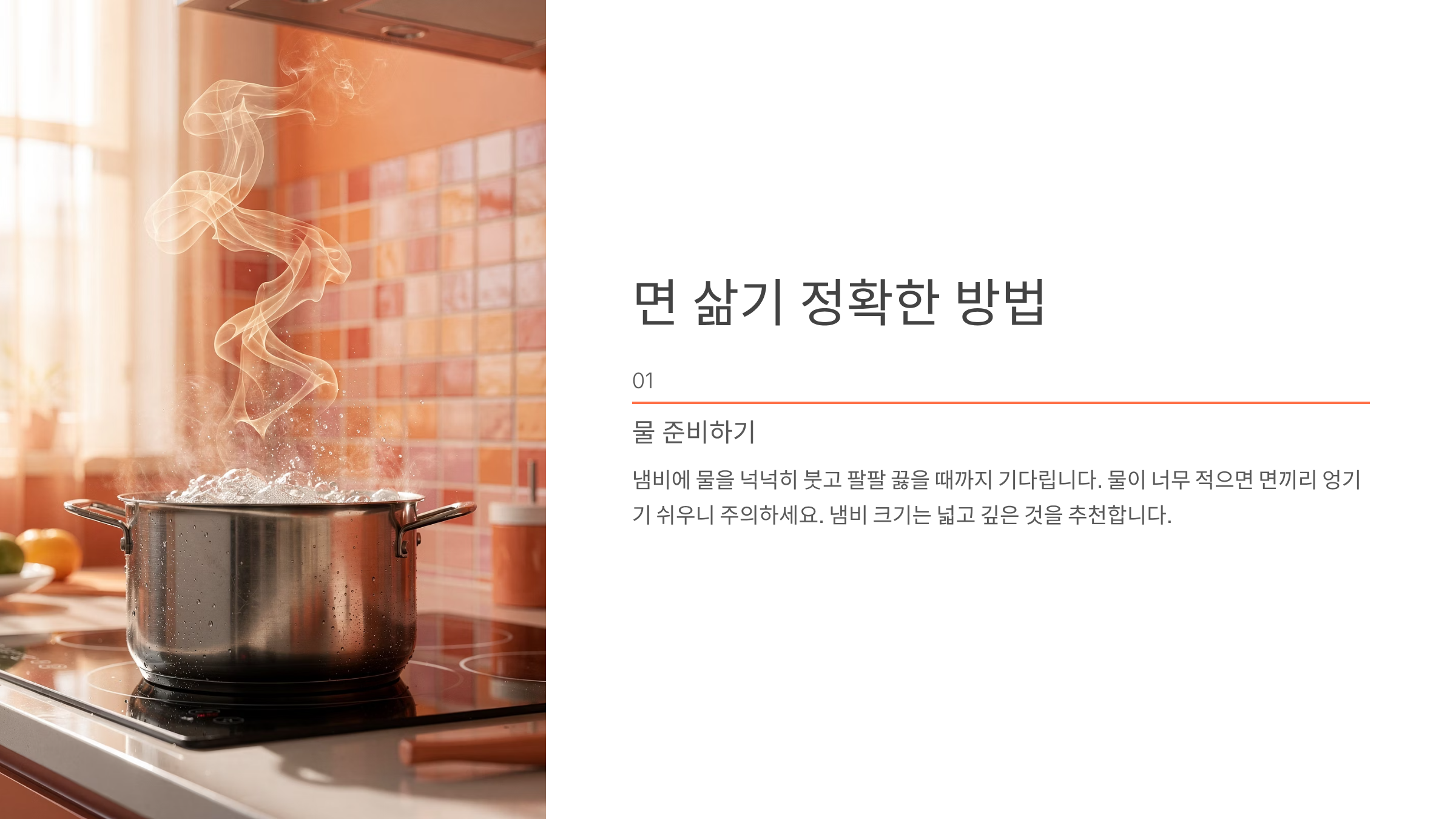 🍝 1단계: 쫄깃한 면을 만드는 비결 - 면 삶기