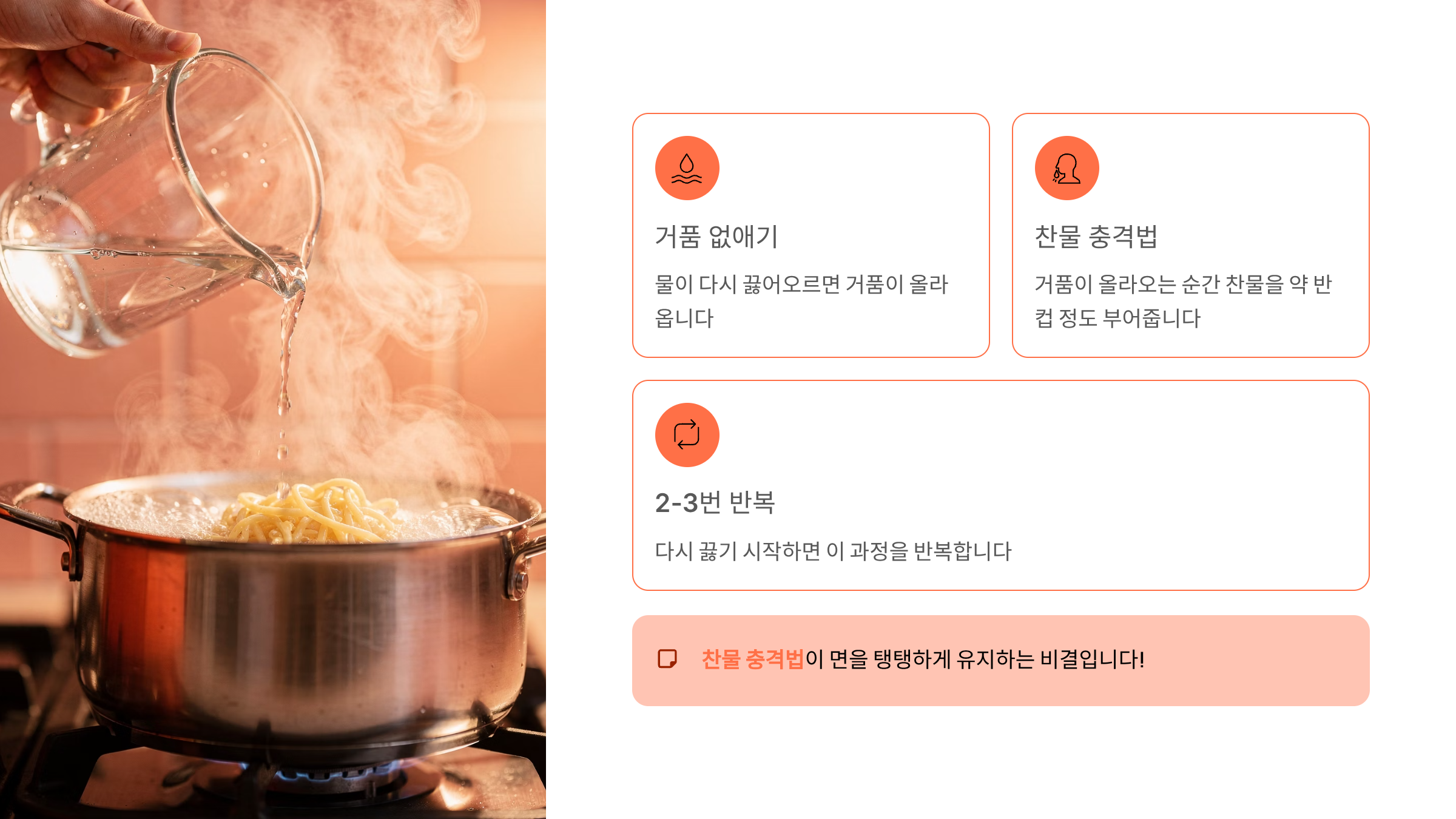 1️⃣ 쫄깃한 면: 찬물 충격법으로 만든다