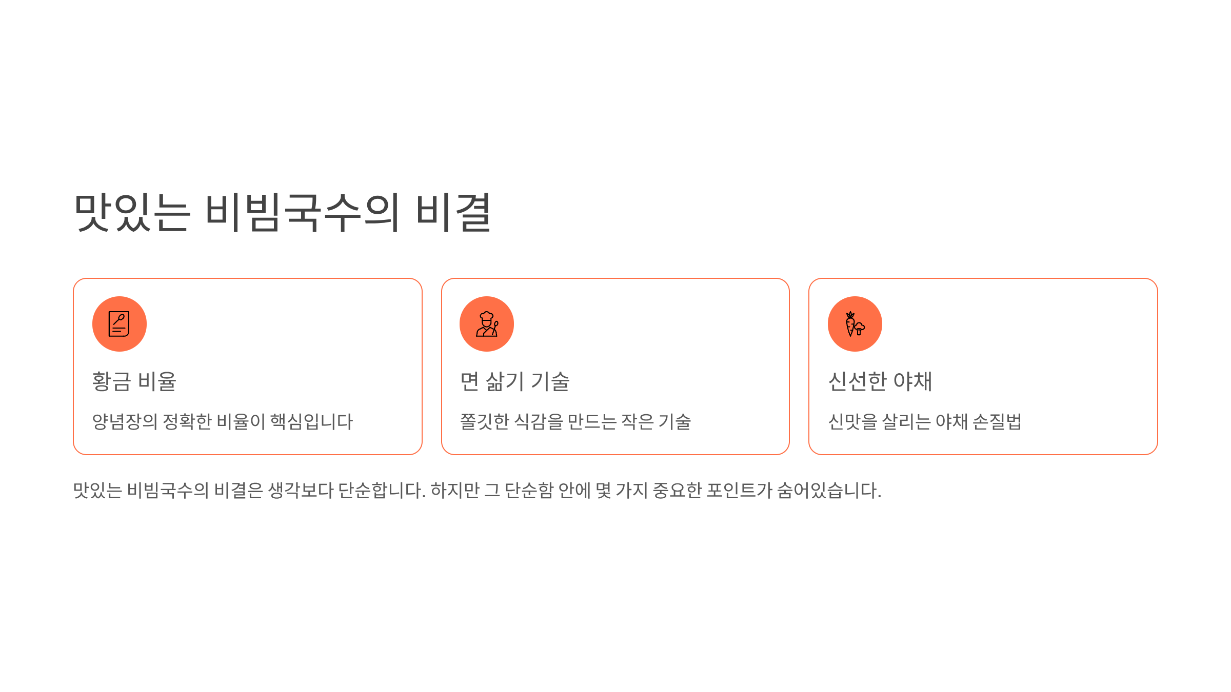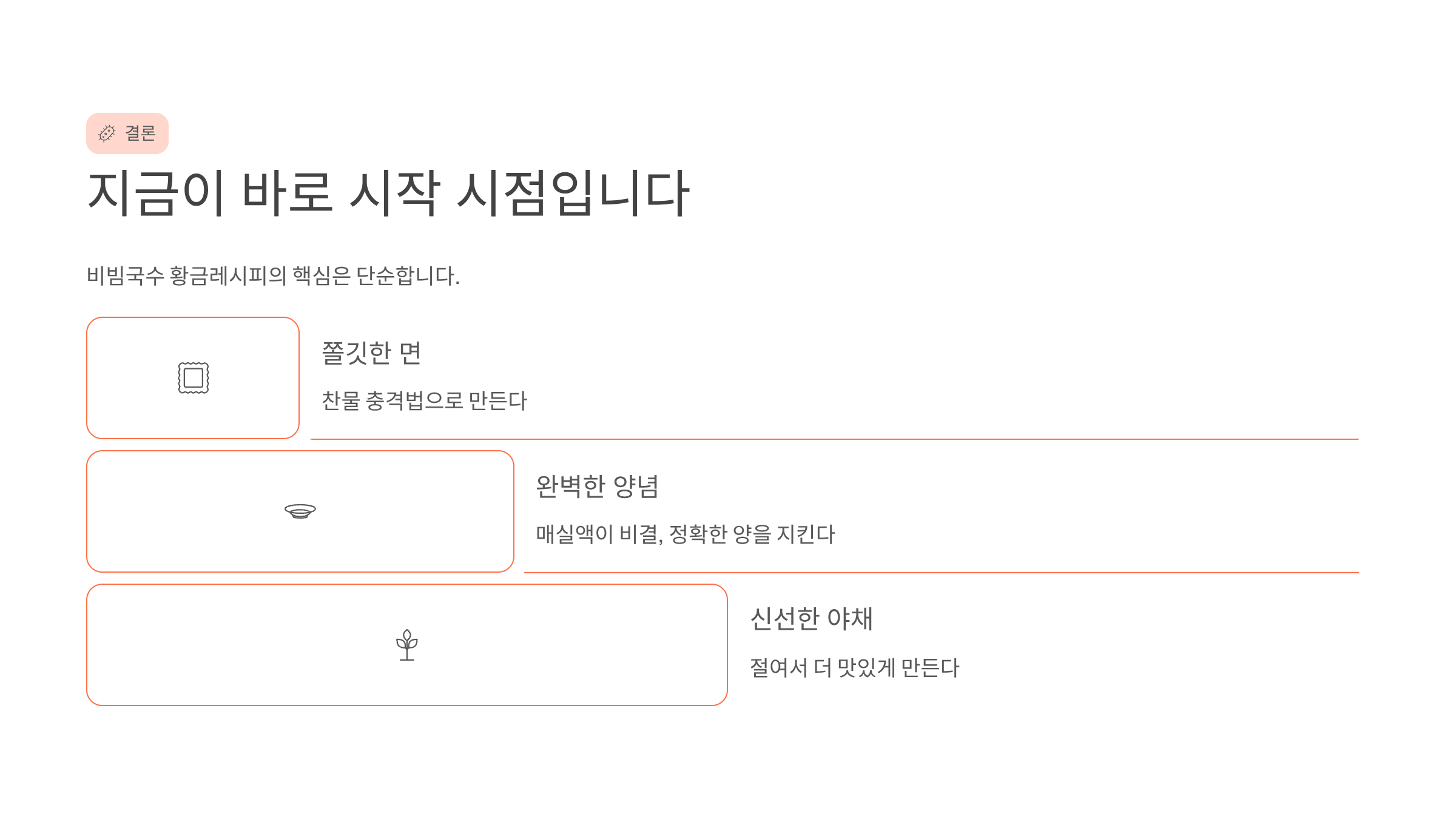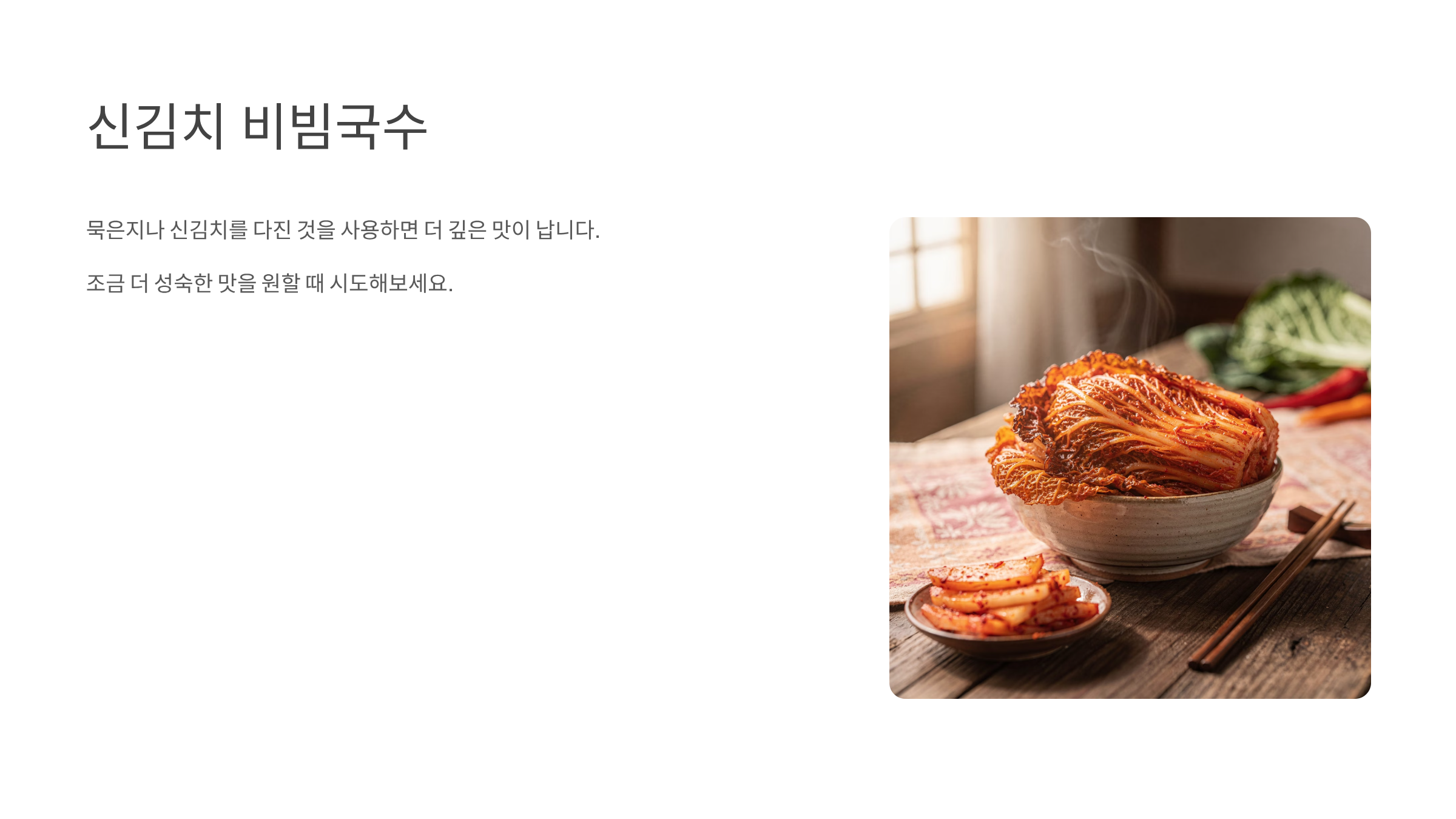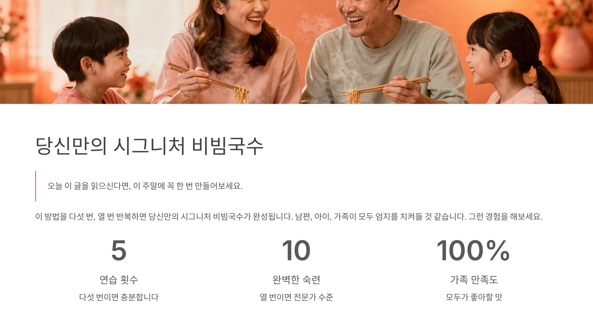오늘 이 글을 읽으신다면, 이 주말에 꼭 한 번 만들어보세요. 이 방법을 다섯 번, 열 번 반복하면 당신만의 시그니처 비빔국수가 완성됩니다. 남편, 아이, 가족이 모두 엄지를 치켜들 것 같습니다. 그런 경험을 해보세요.