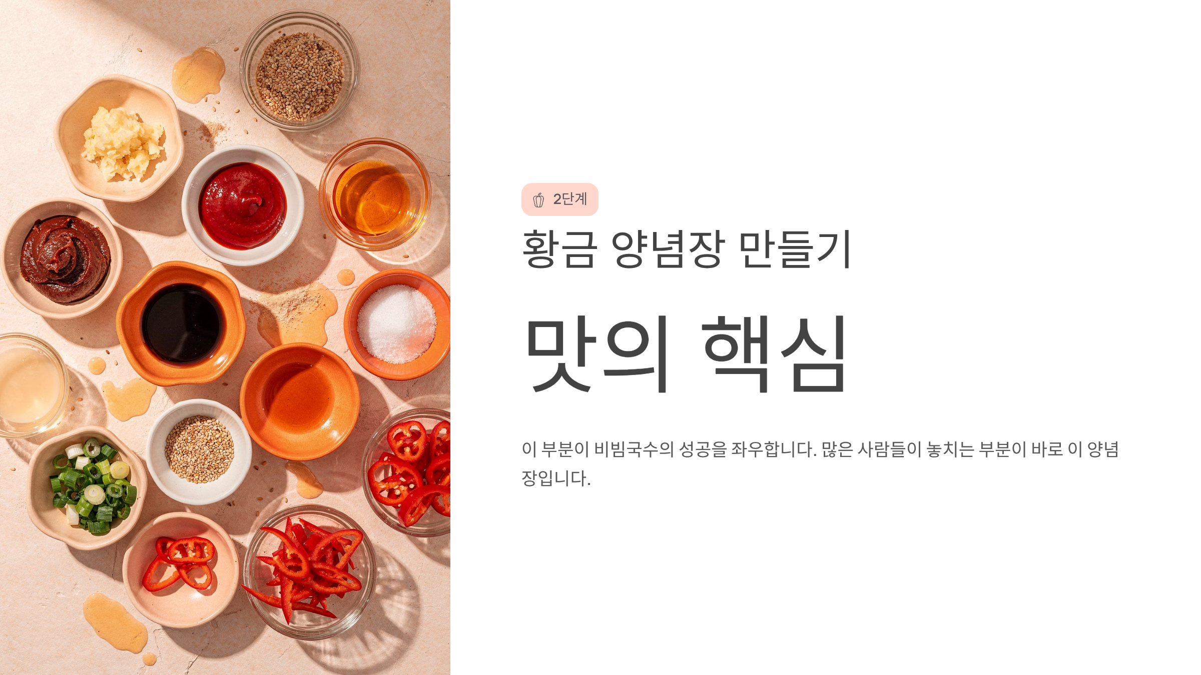 비빔국수 황금레시피의 핵심은 단순합니다.