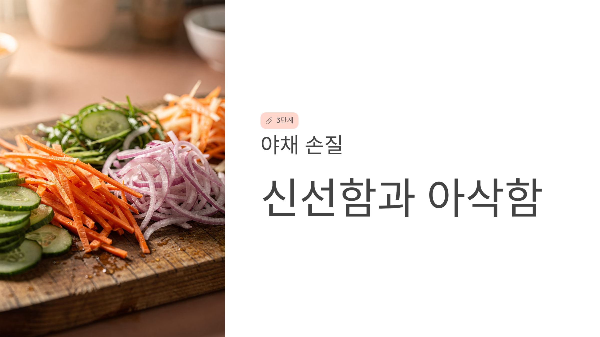 🥒 3단계: 야채 손질 - 신선함과 아삭함의 비결