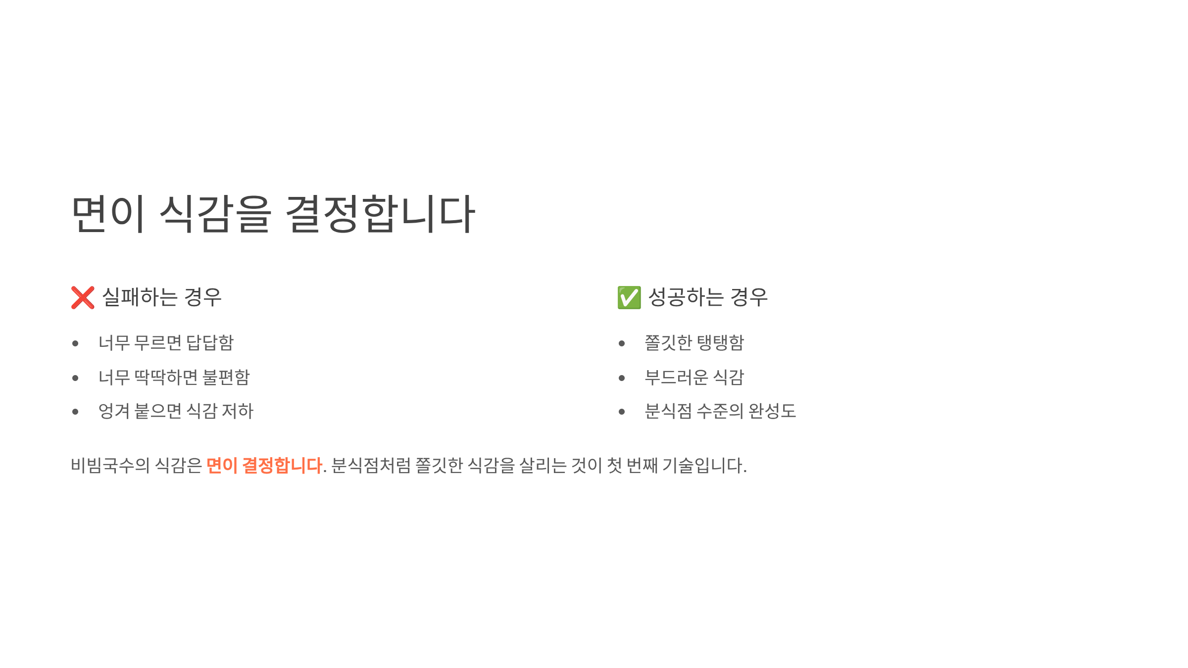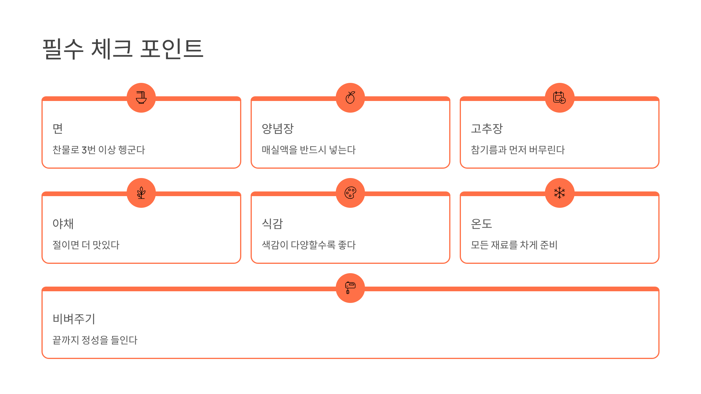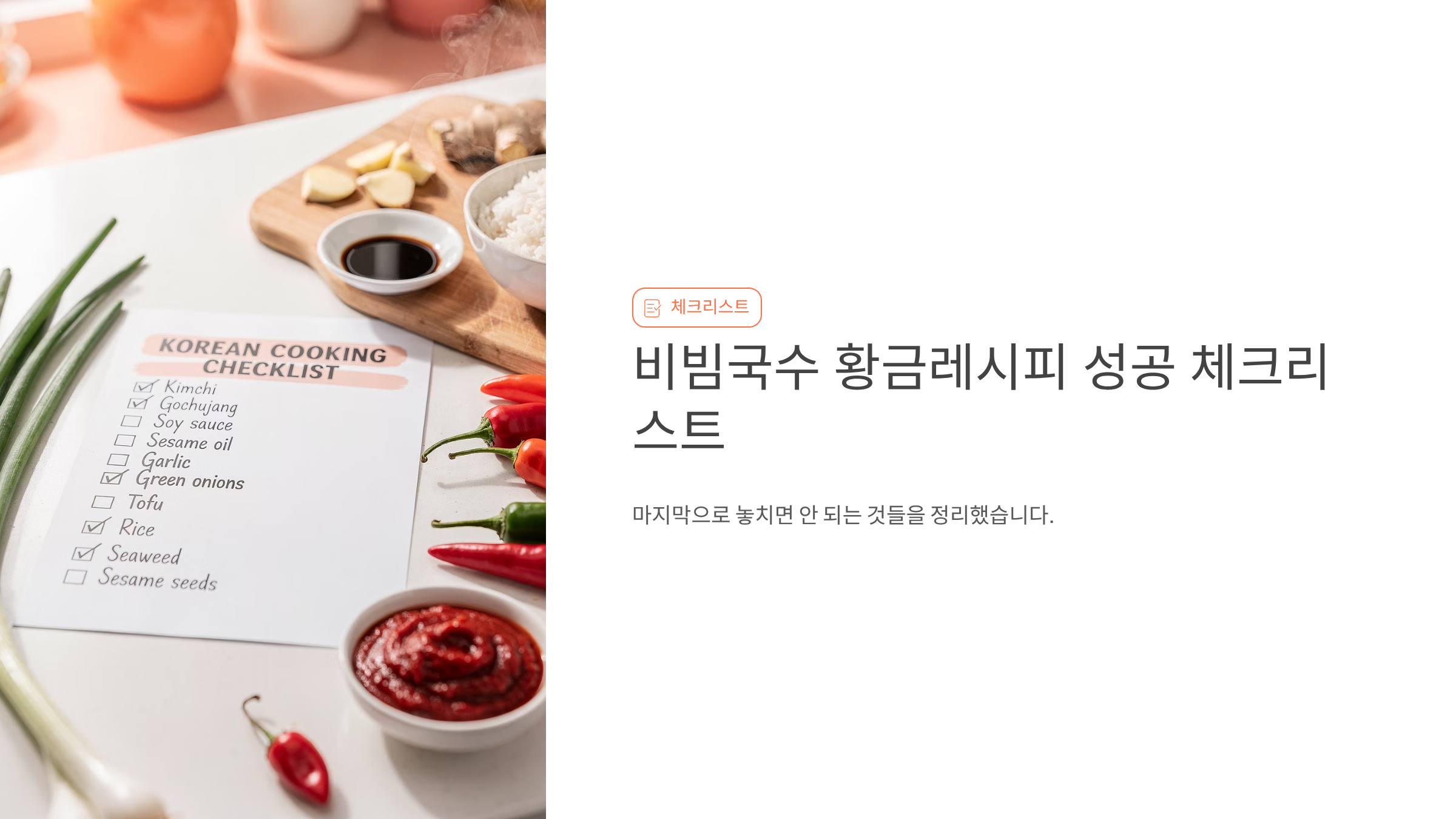 🎯 비빔국수 황금레시피 성공 체크리스트