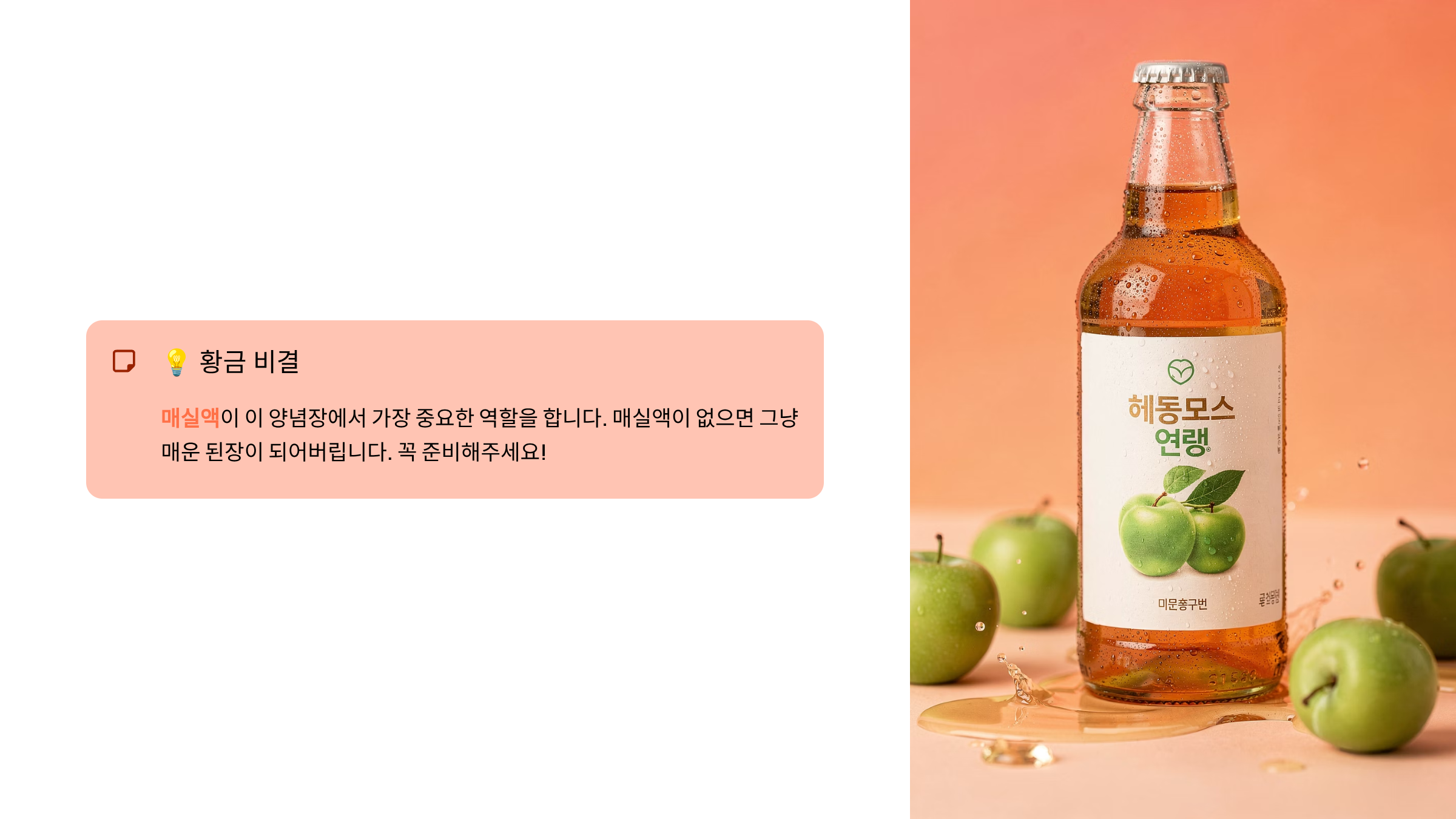 2️⃣ 완벽한 양념: 매실액이 비결, 정확한 양을 지킨다