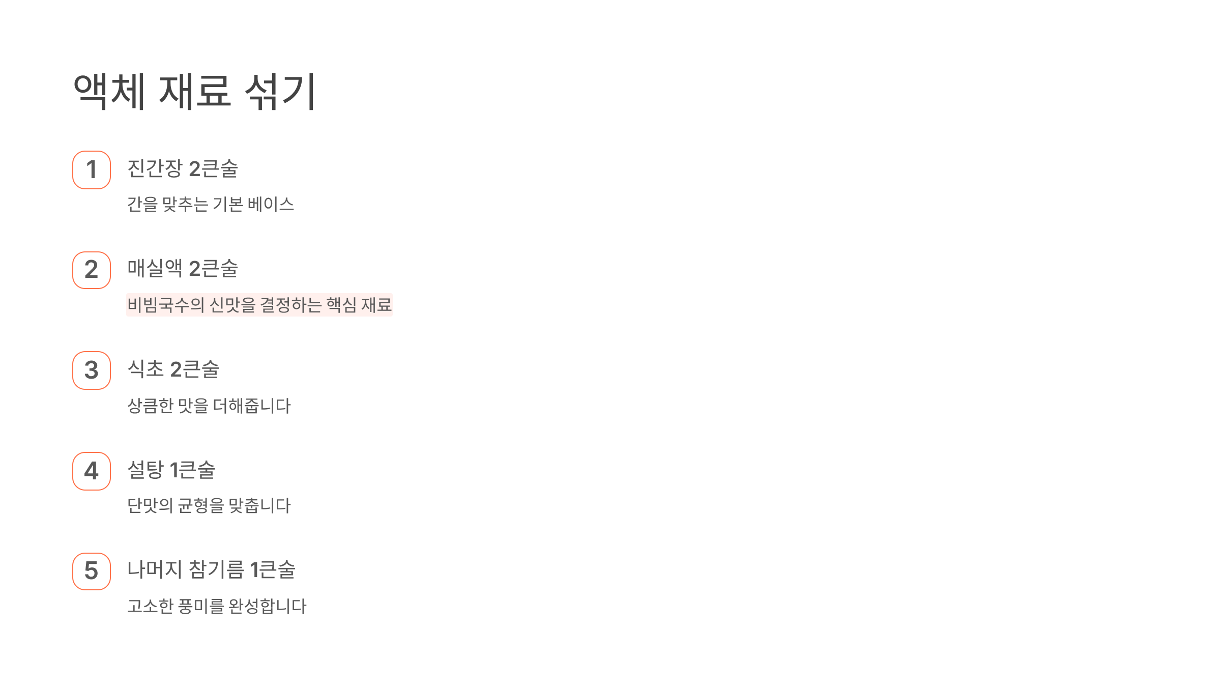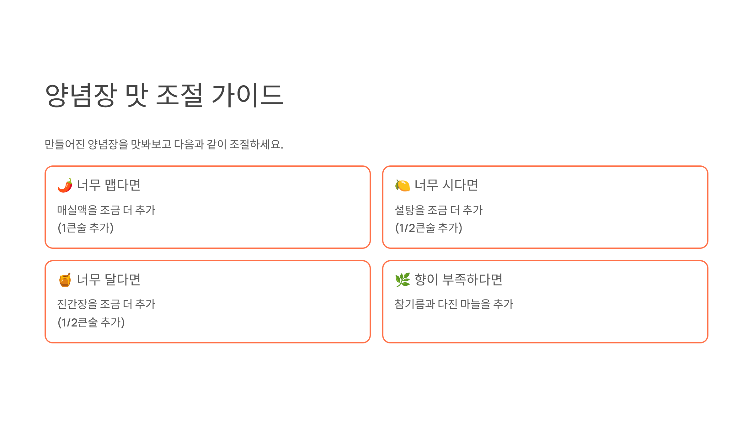 - 너무 맵다면 → 매실액을 조금 더 추가 (1큰술 추가)