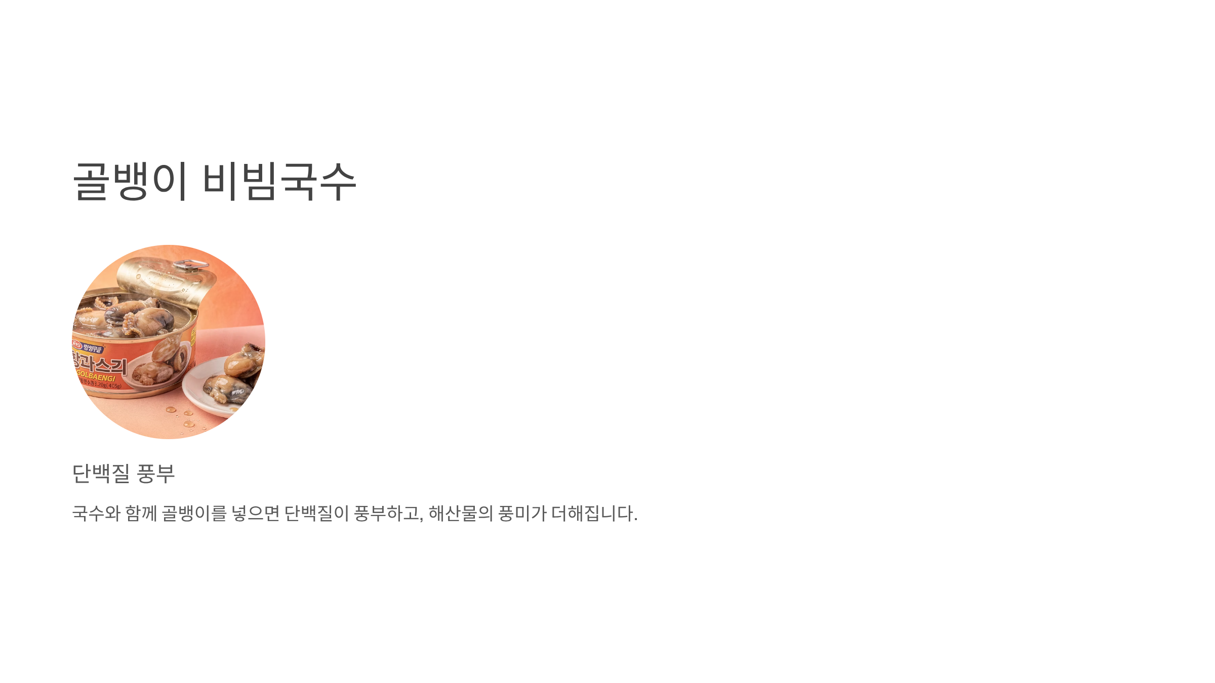국수와 함께 골뱅이를 넣으면 단백질이 풍부하고, 해산물의 풍미가 더해집니다.