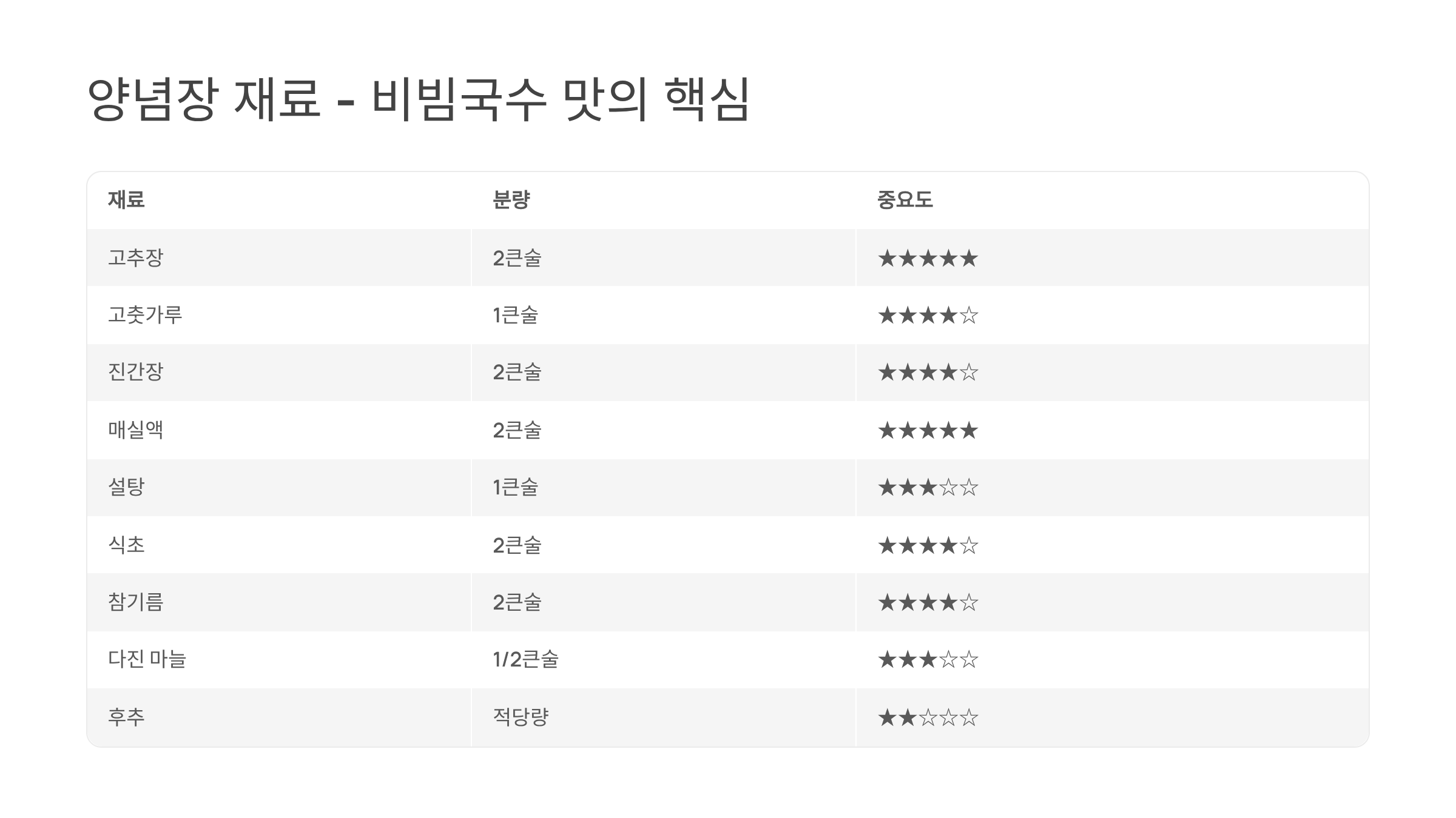 🌶️ 2단계: 황금 양념장 만들기 - 비빔국수 맛의 핵심
