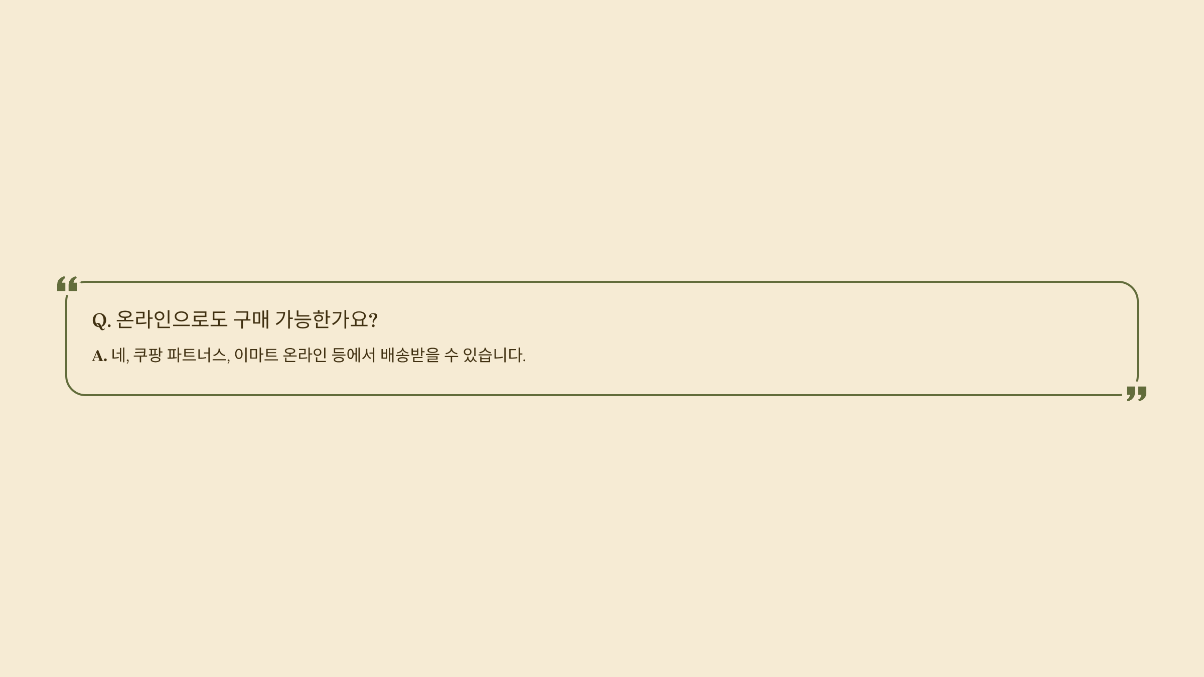 A. 네, 쿠팡 파트너스, 이마트 온라인 등에서 배송받을 수 있습니다.