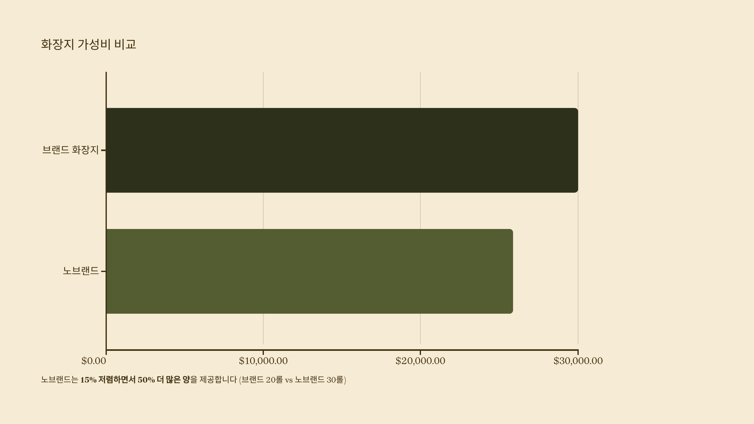- 브랜드 화장지: 30,000원 (20롤, 같은 두께)