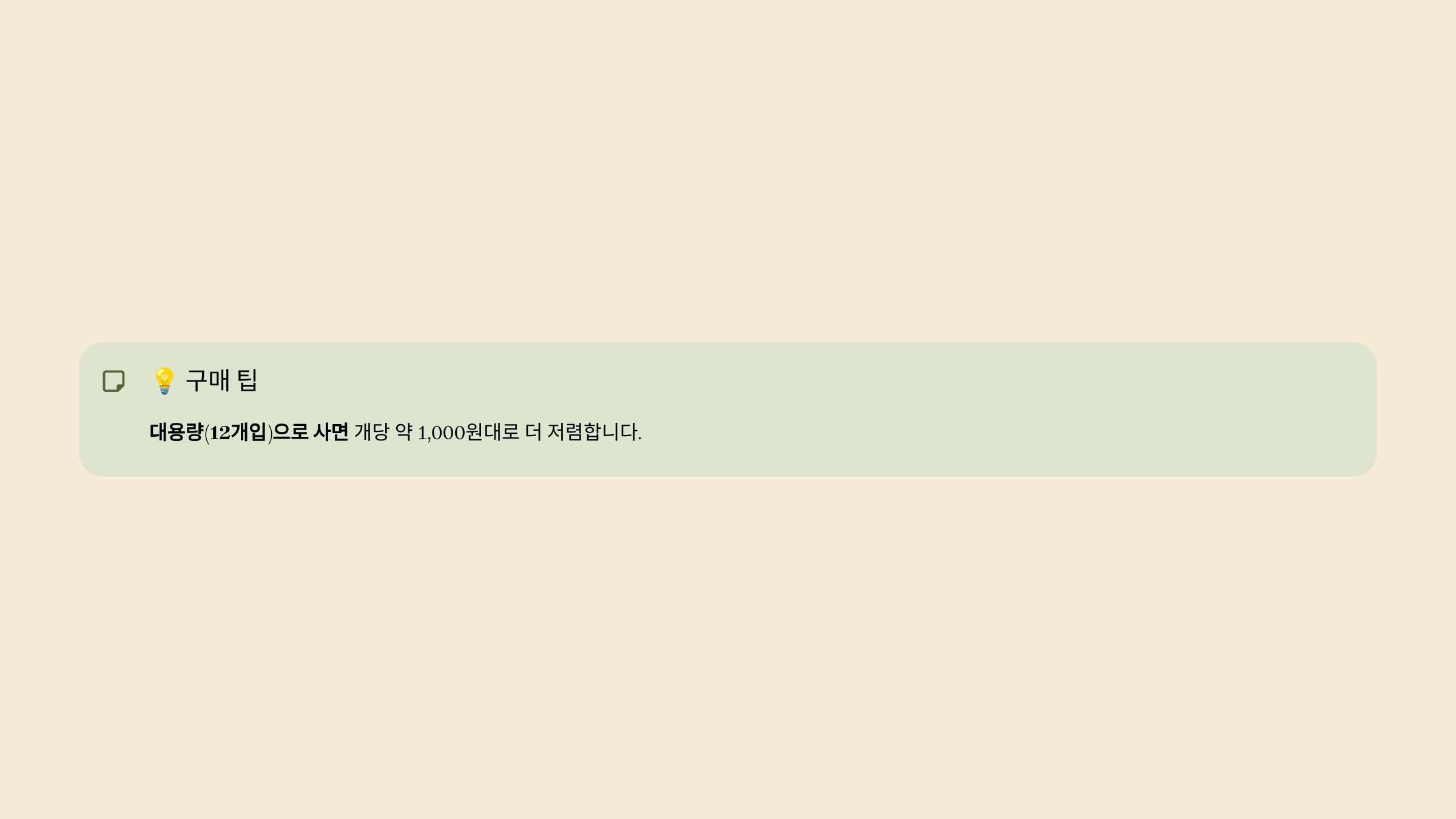 구매 팁: 대용량(12개입)으로 사면 개당 약 1,000원대로 더 저렴합니다.