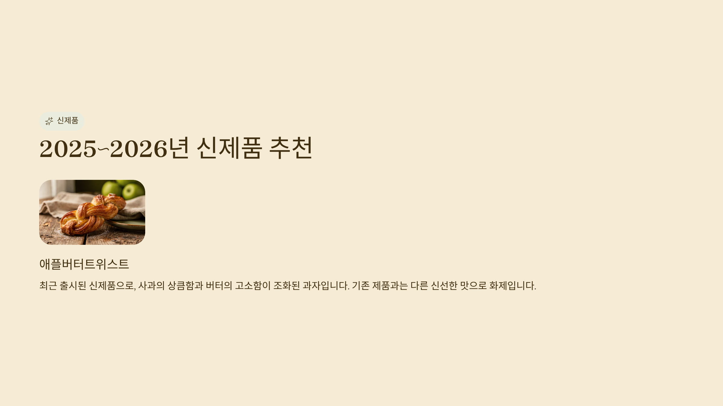 최근 출시된 신제품으로, 사과의 상큼함과 버터의 고소함이 조화된 과자입니다. 기존 제품과는 다른 신선한 맛으로 화제입니다.