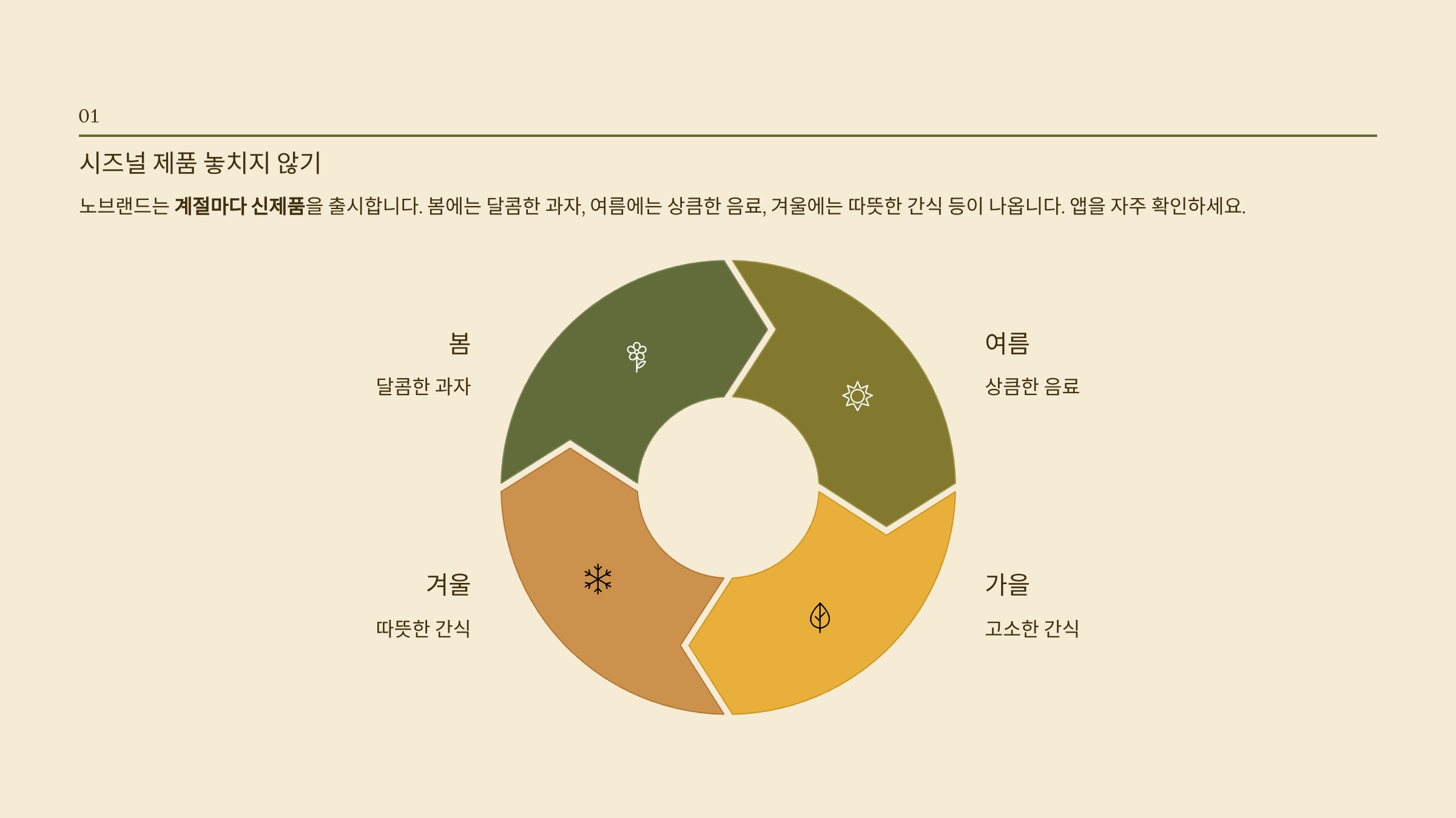 노브랜드는 계절마다 신제품을 출시합니다. 봄에는 달콤한 과자, 여름에는 상큼한 음료, 겨울에는 따뜻한 간식 등이 나옵니다. 앱을 자주 확인하세요.