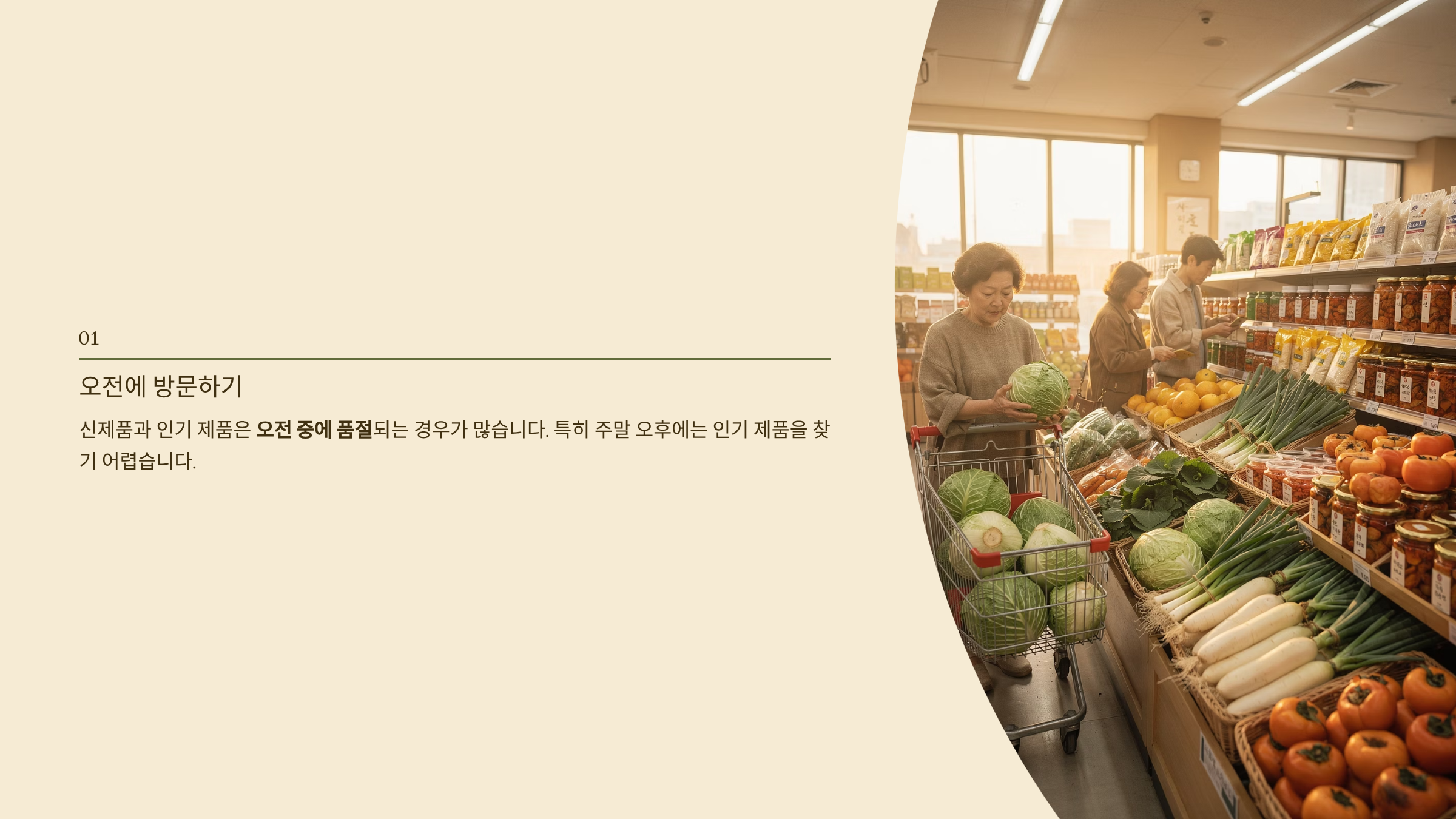 신제품과 인기 제품은 오전 중에 품절되는 경우가 많습니다. 특히 주말 오후에는 인기 제품을 찾기 어렵습니다.