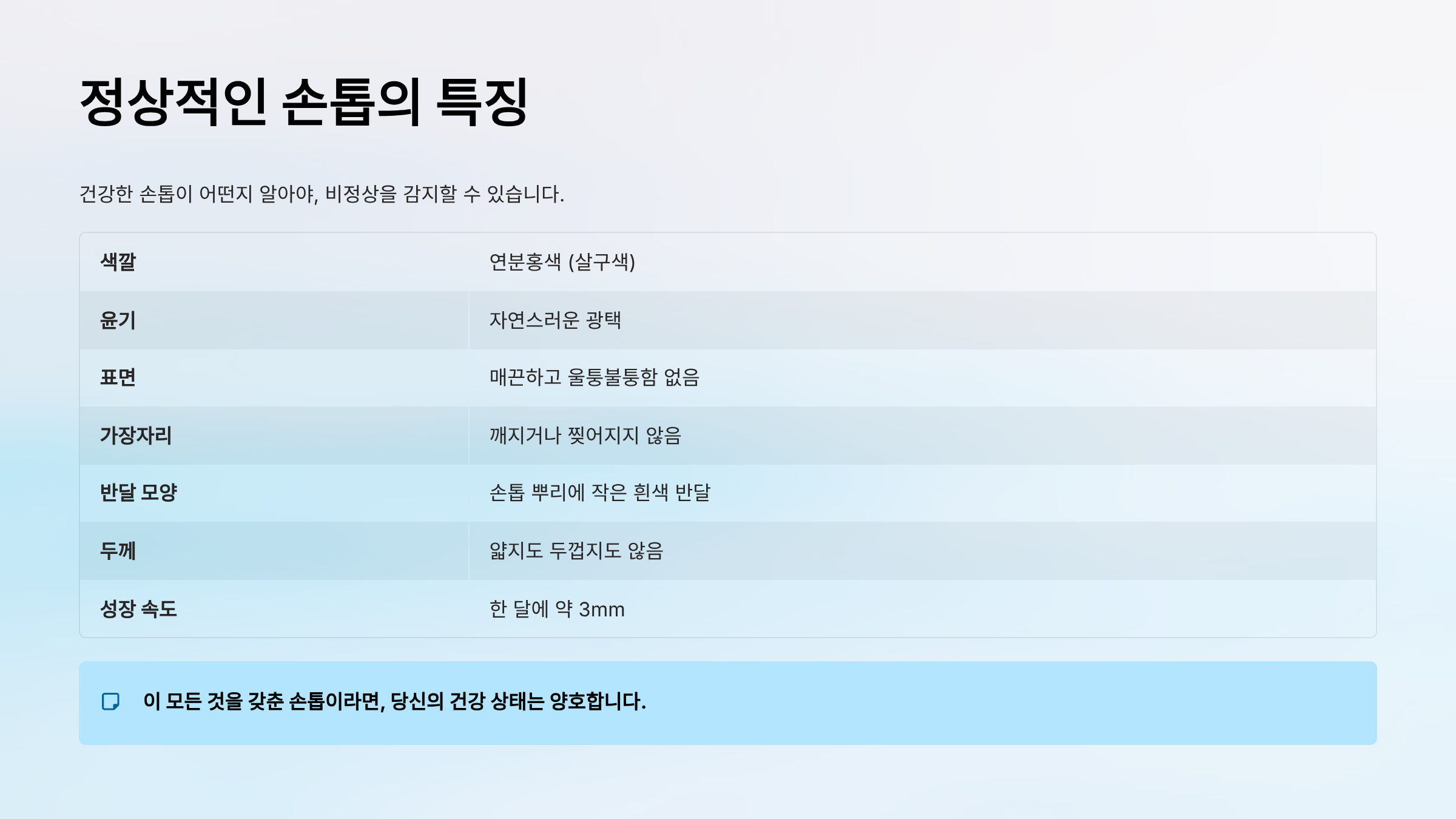 🔍 건강한 손톱의 특징 - 먼저 정상을 알아야 합니다