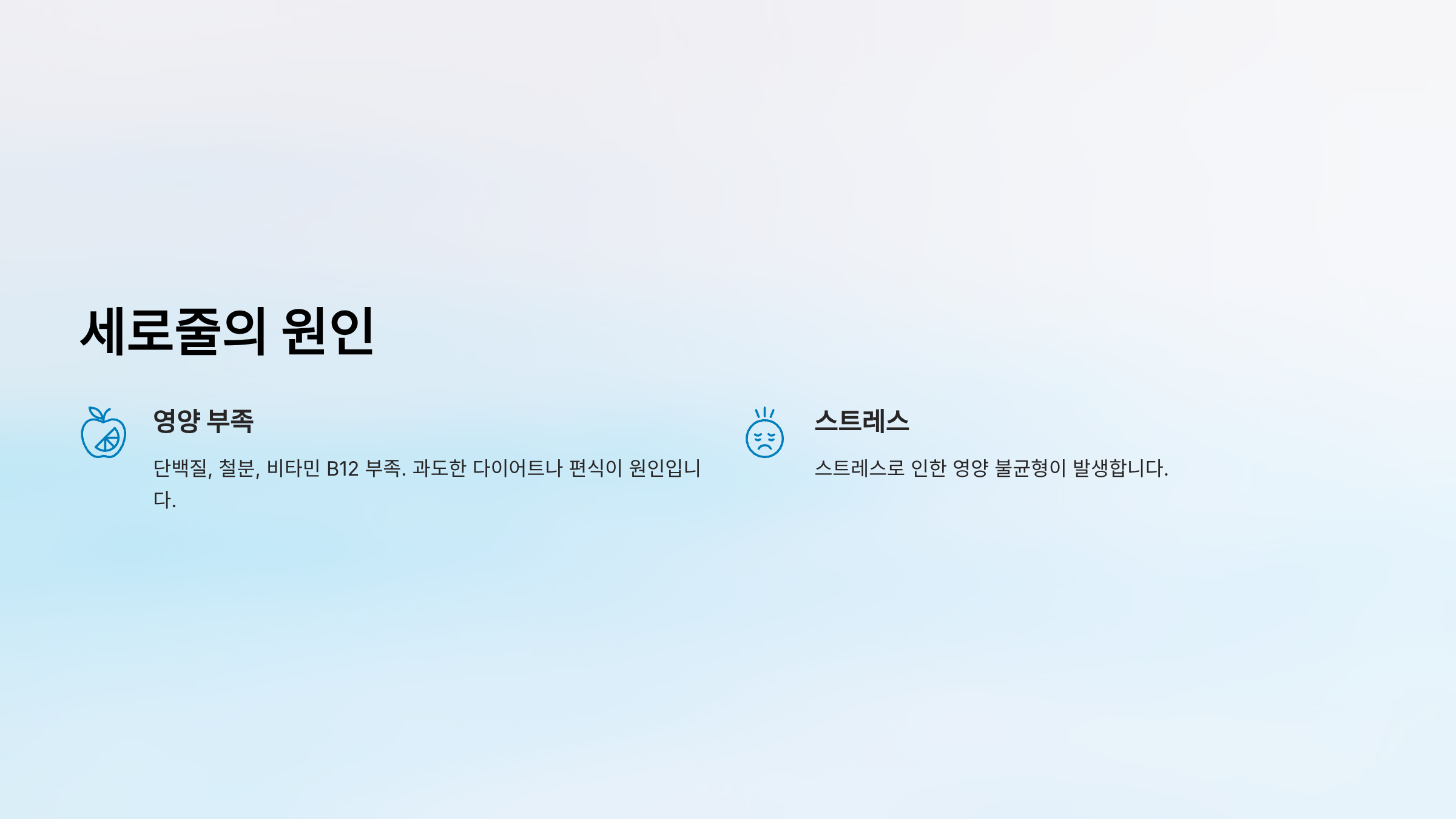 가능한 질환: 영양 부족, 혈액 순환 장애, 노화, 심한 스트레스
