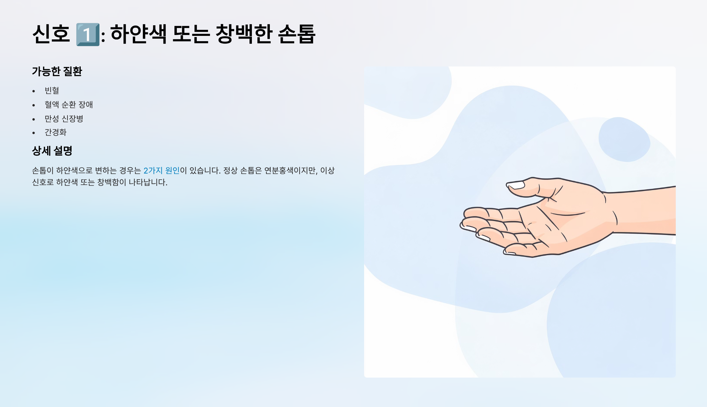 - 결과적으로 손톱이 창백해집니다