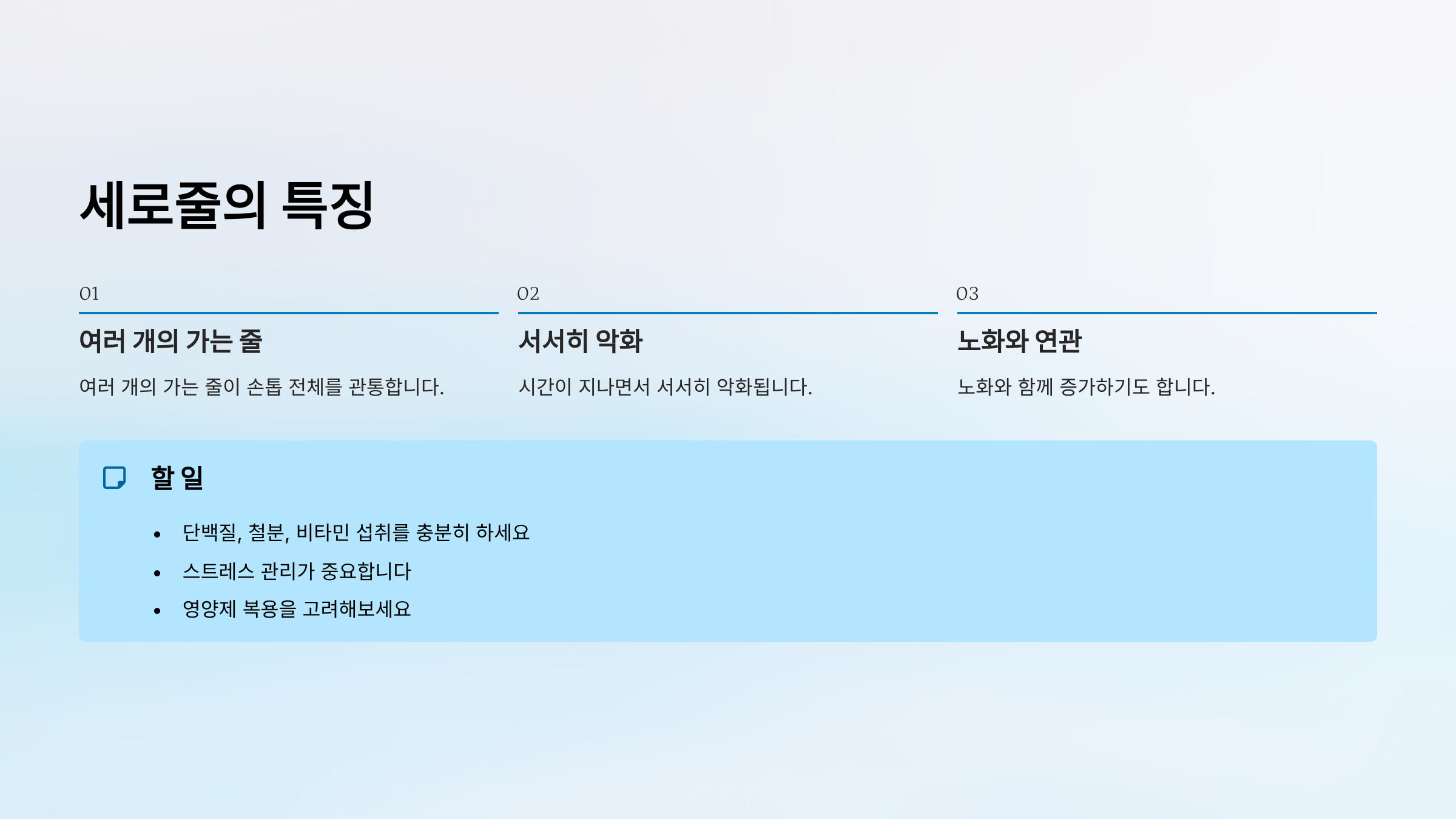 - 영양제 복용을 고려해보세요