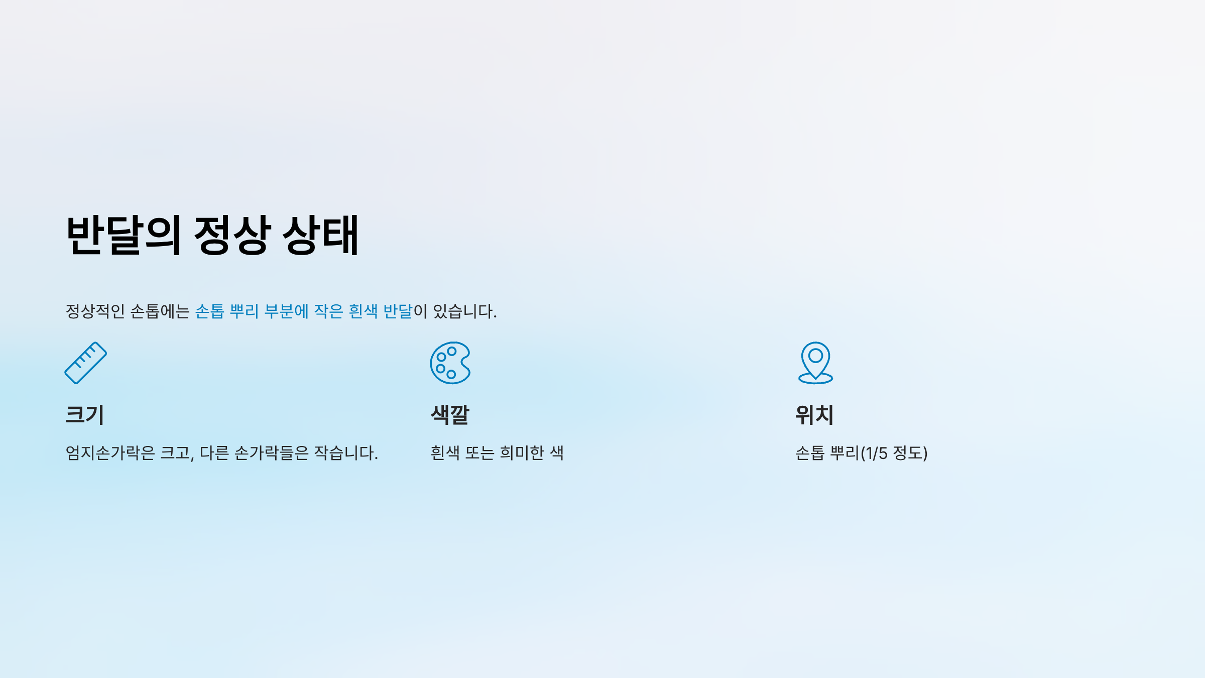 | 반달 모양 | 손톱 뿌리에 작은 흰색 반달 |