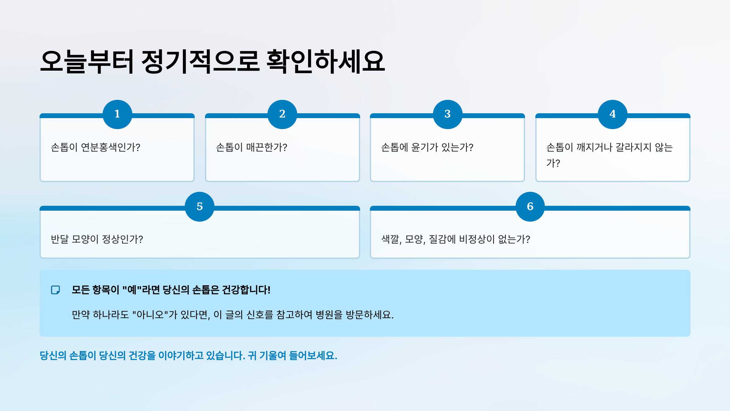 손톱의 변화는 건강의 신호이지만, 절대적인 진단 기준이 아닙니다.