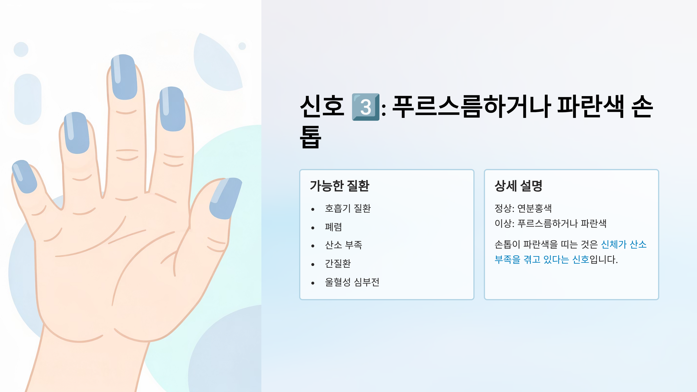 신호 3️⃣: 손톱이 푸르스름하거나 창백한 파란색이다