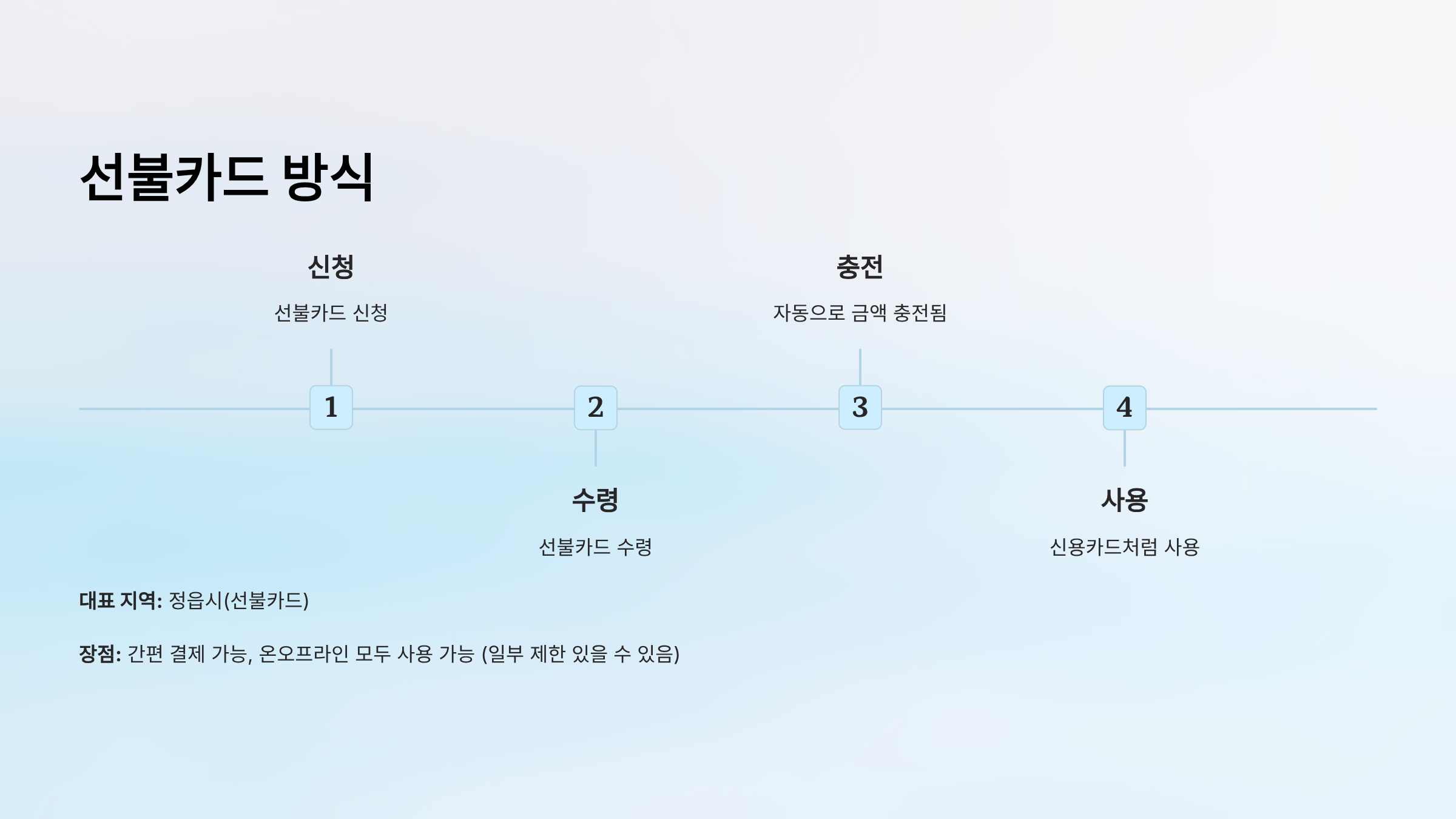 | 지급 방식 | 카드, 선불카드, 상품권 등 (지역마다 다름) |