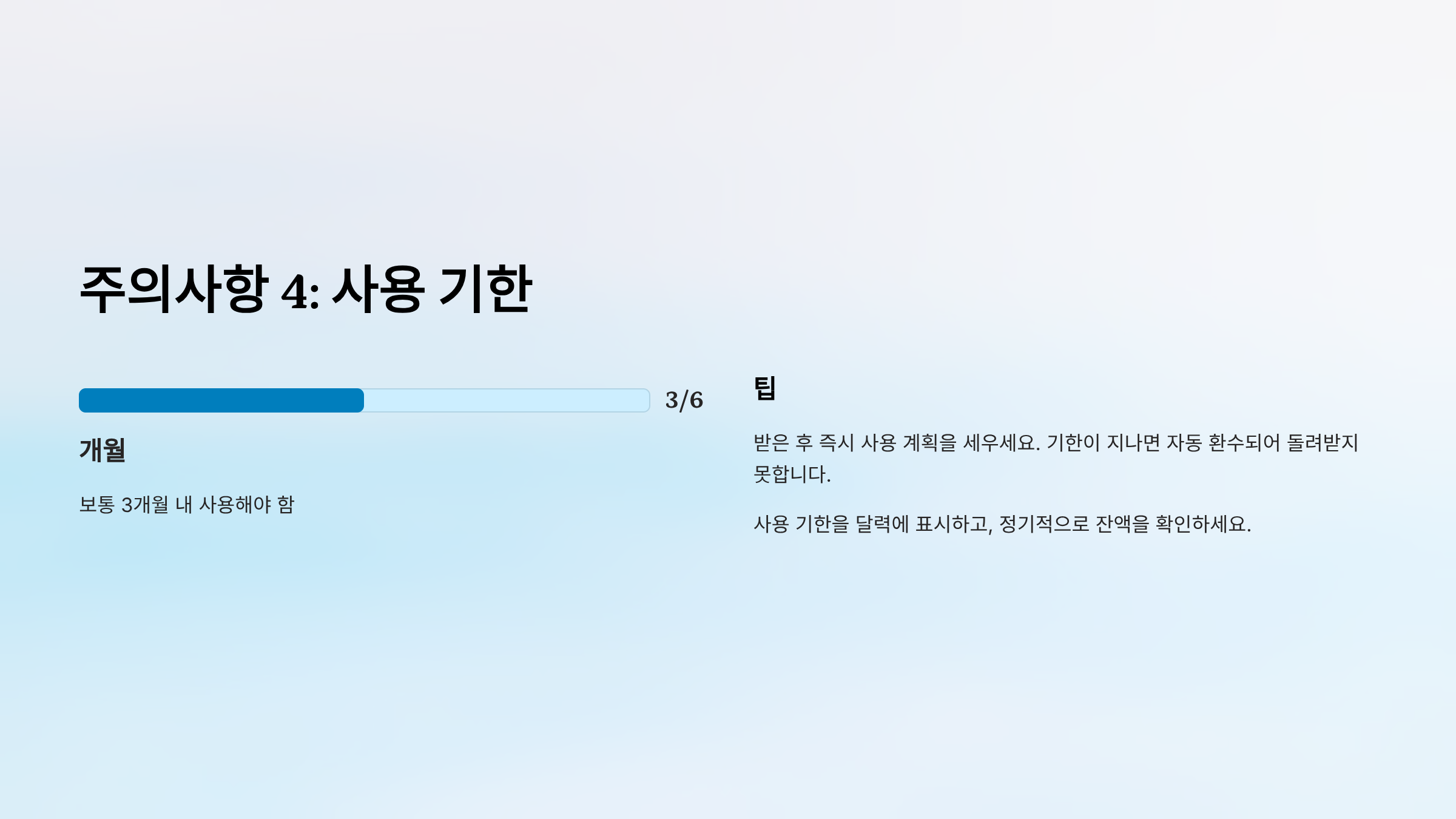 팁: 받은 후 즉시 사용 계획을 세우세요. 기한이 지나면 자동 환수됩니다.