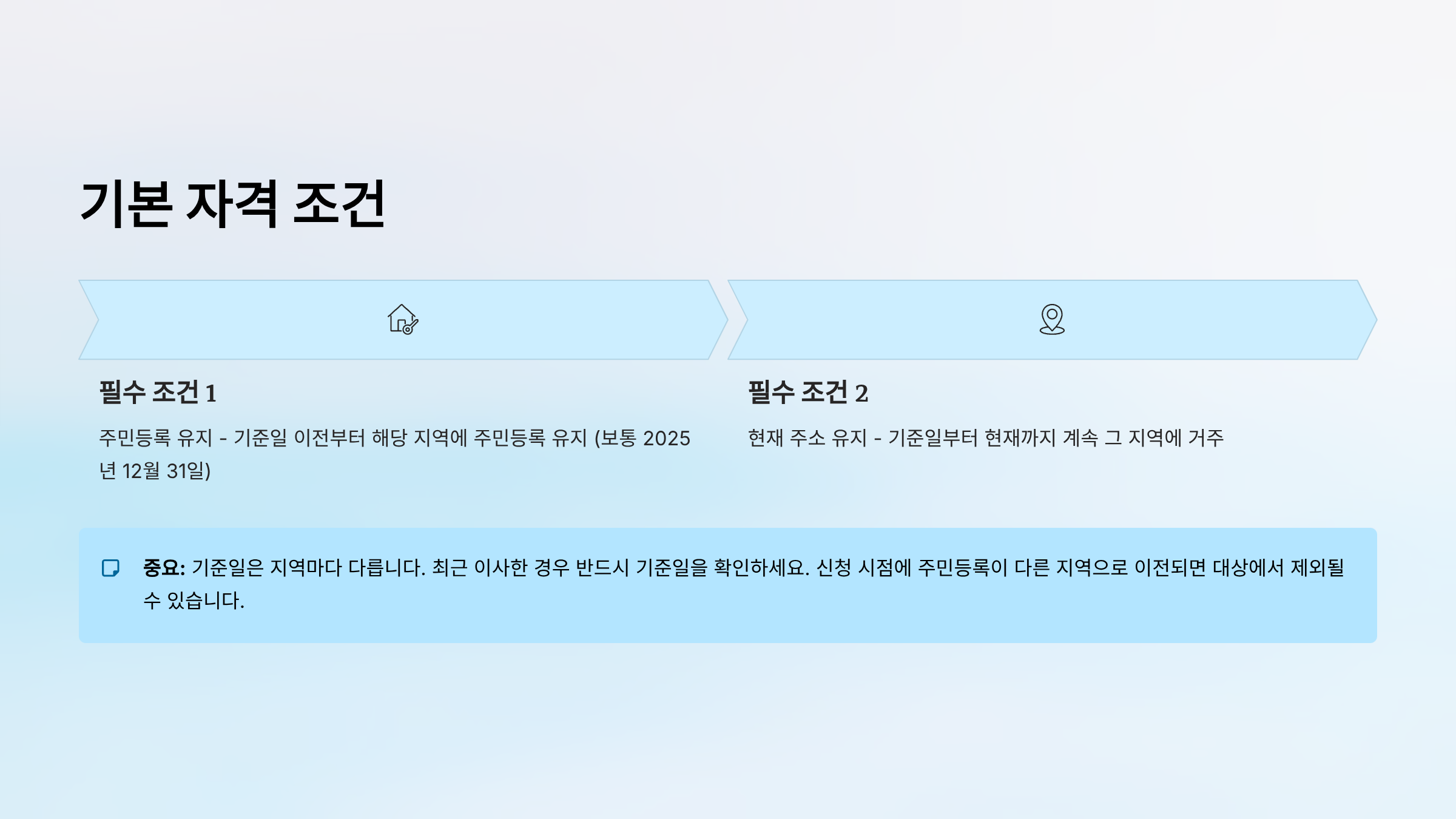 | 신청 자격 | 기준일 이전부터 주민등록 + 현재 주소 유지 |