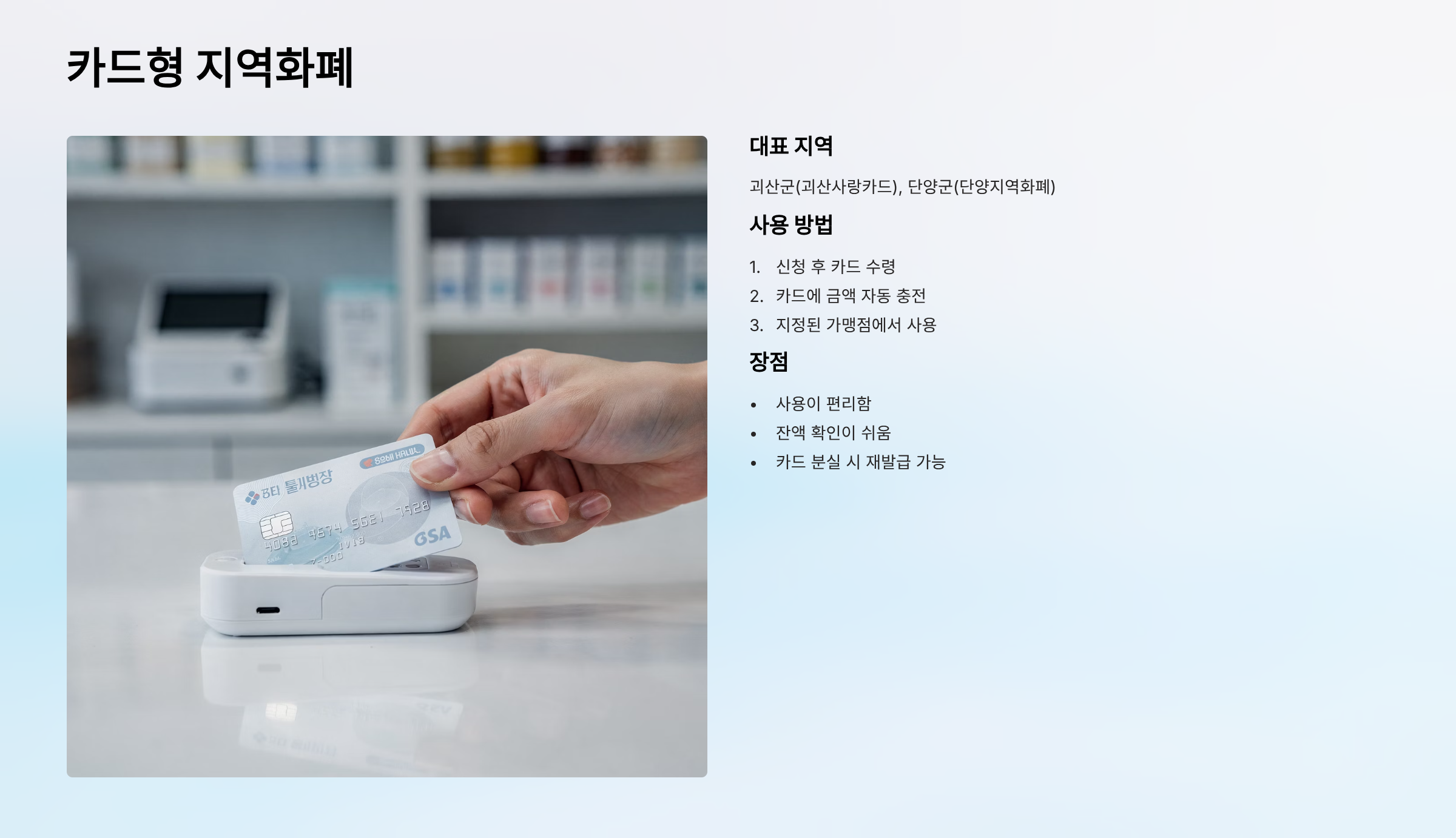 대표 지역: 괴산군(괴산사랑카드), 단양군(단양지역화폐)