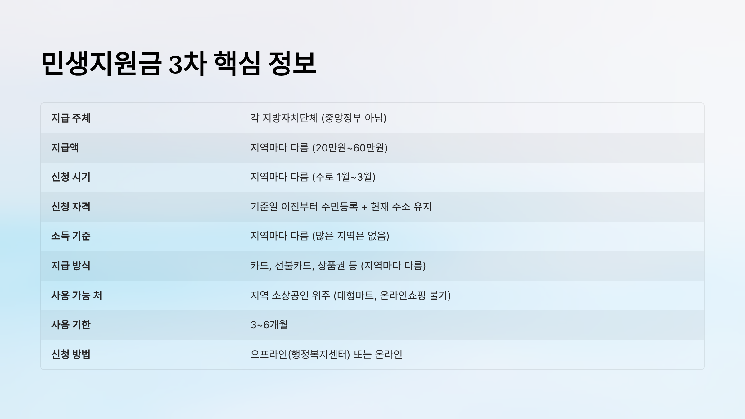 📊 2026년 민생지원금 3차 요약표