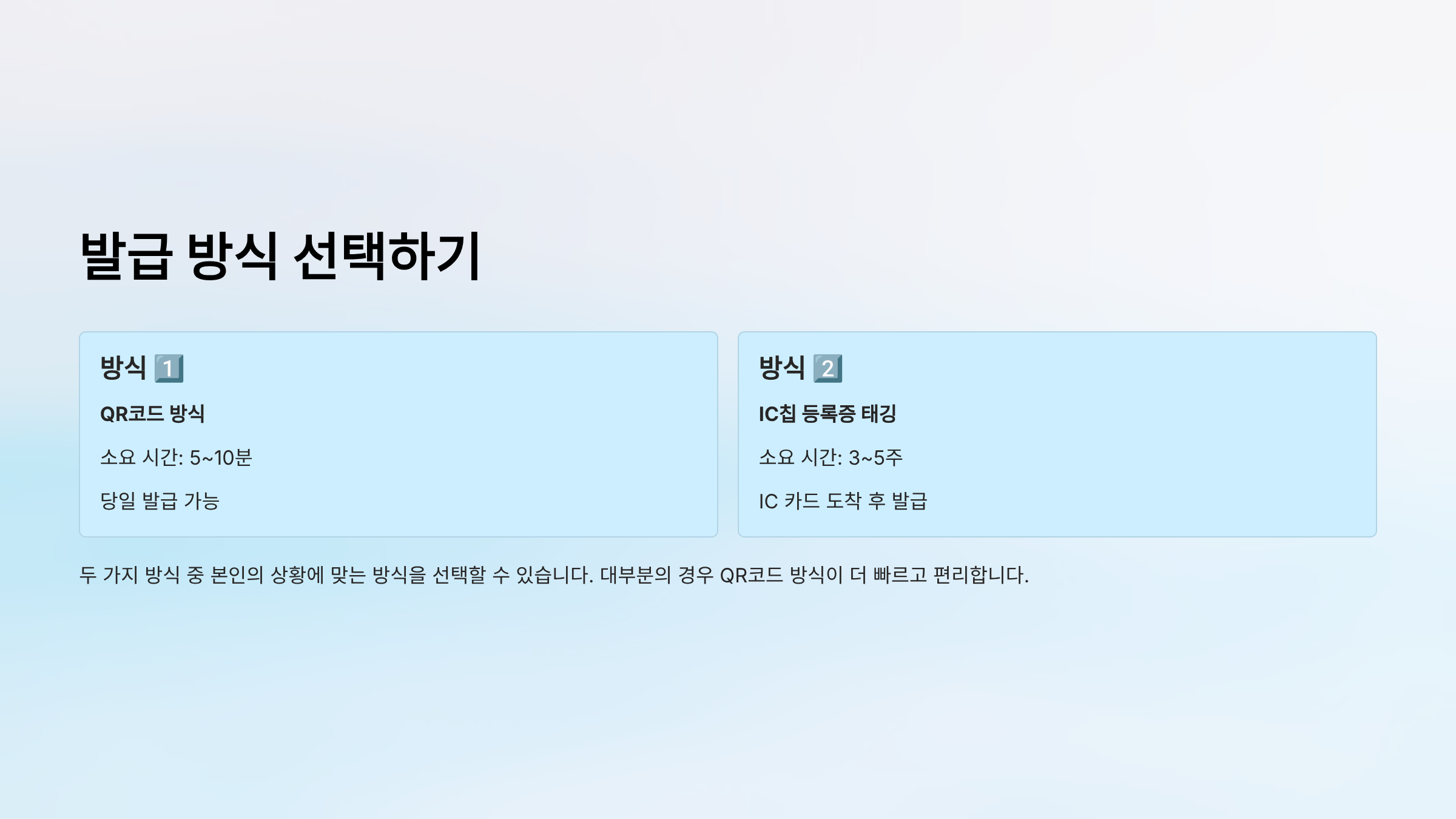 소요 시간: 3~5주 (IC 카드 도착 후)